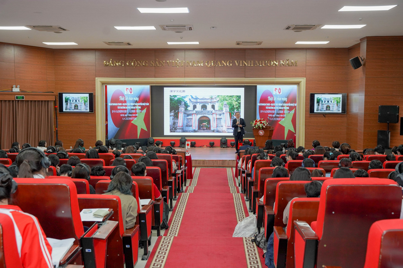 | Ngài Yamada Takio - Đại sứ đặc mệnh toàn quyền Nhật Bản tại Việt Nam đã đến thăm và có bài chia sẻ về “Quan hệ Việt Nam - Nhật Bản: Khởi nguồn và tương lai” cho hơn 300 giảng viên, sinh viên Trường Đại học Ngoại thương. |
