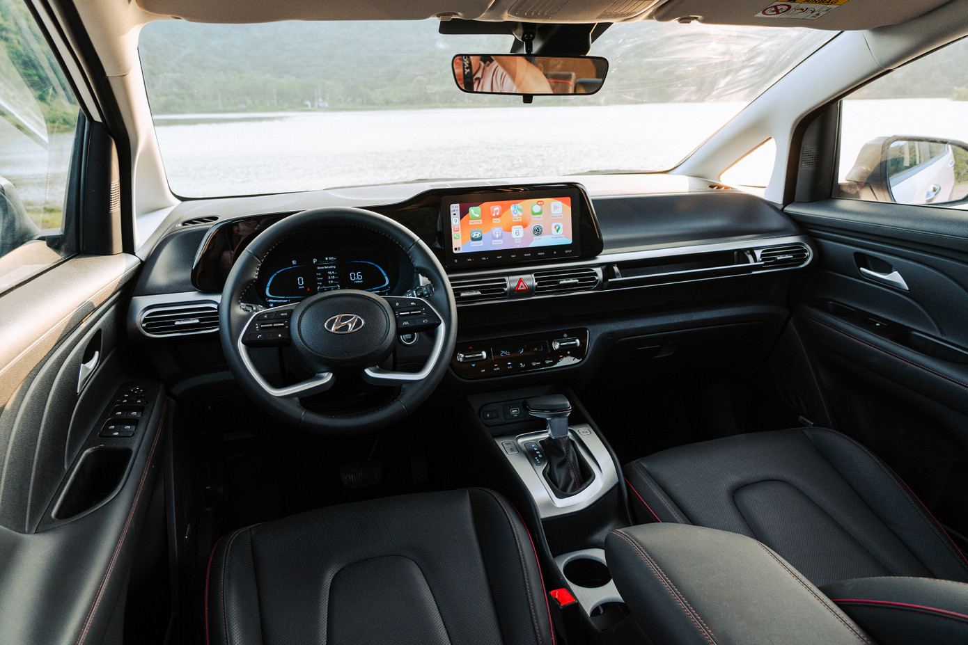 Stargazer X còn được trang bị sạc không dây chuẩn Qi, đi kèm hệ thống khe gió làm mát giúp duy trì công suất sạc ổn định. Các trang bị quen thuộc của Hyundai như khởi động nút bấm, khởi động từ xa, ghế bọc da, điều hòa tự động và cửa gió điều hòa cho cả 3 hàng ghế đều có mặt trên Stargazer X. Với 31 vị trí để đồ, Stargazer X tạo cảm giác như bất cứ chỗ nào trên xe cũng có thể để đồ, đặc biệt là khu vực táp lô với 3 tầng chứa đồ rộng rãi.