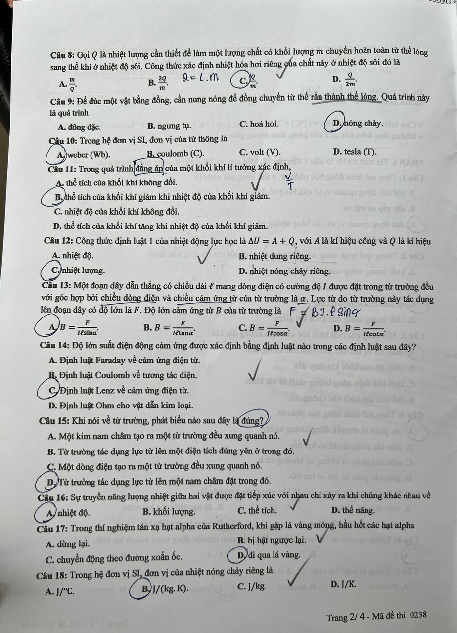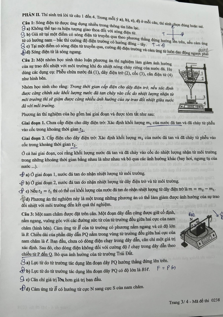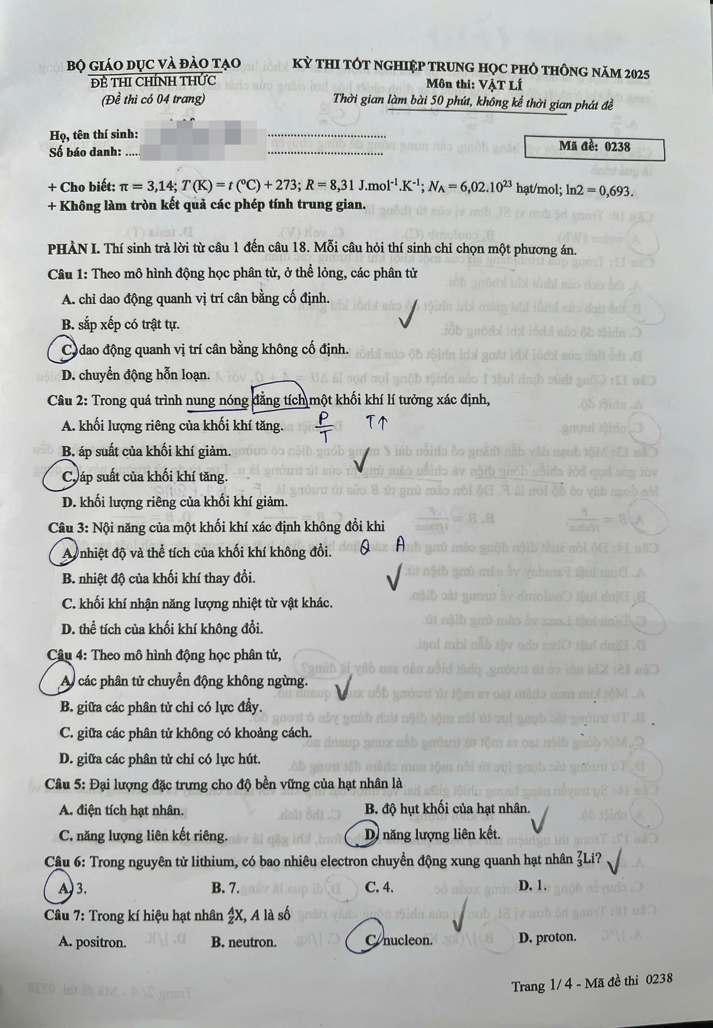 Dưới đây là đề thi môn Vật lý theo Chương trình GDPT 2018 mã đề 0238: