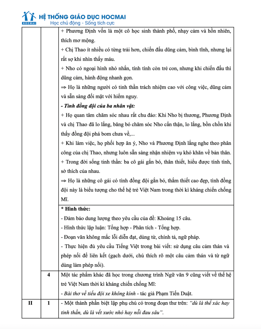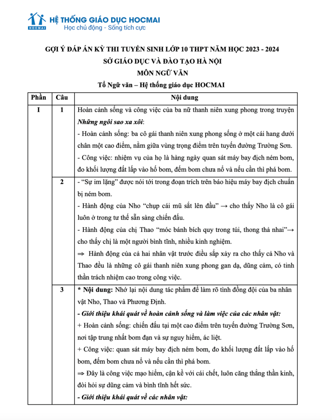 Dưới đây là đáp án gợi ý môn Văn do Tổ Ngữ văn - hệ thống giáo dục HOCMAI thực hiện, mời thí sinh tham khảo.