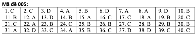| Đáp án tiếng Anh mã đề 001. (Nguồn: Tuyensinh247) |