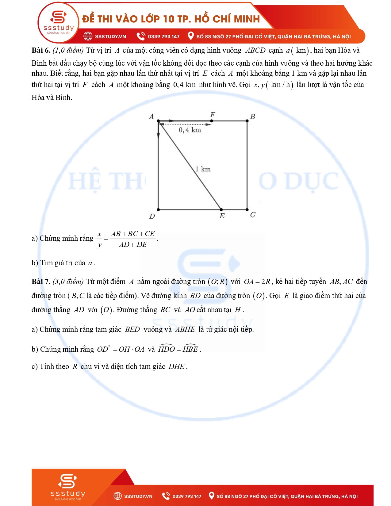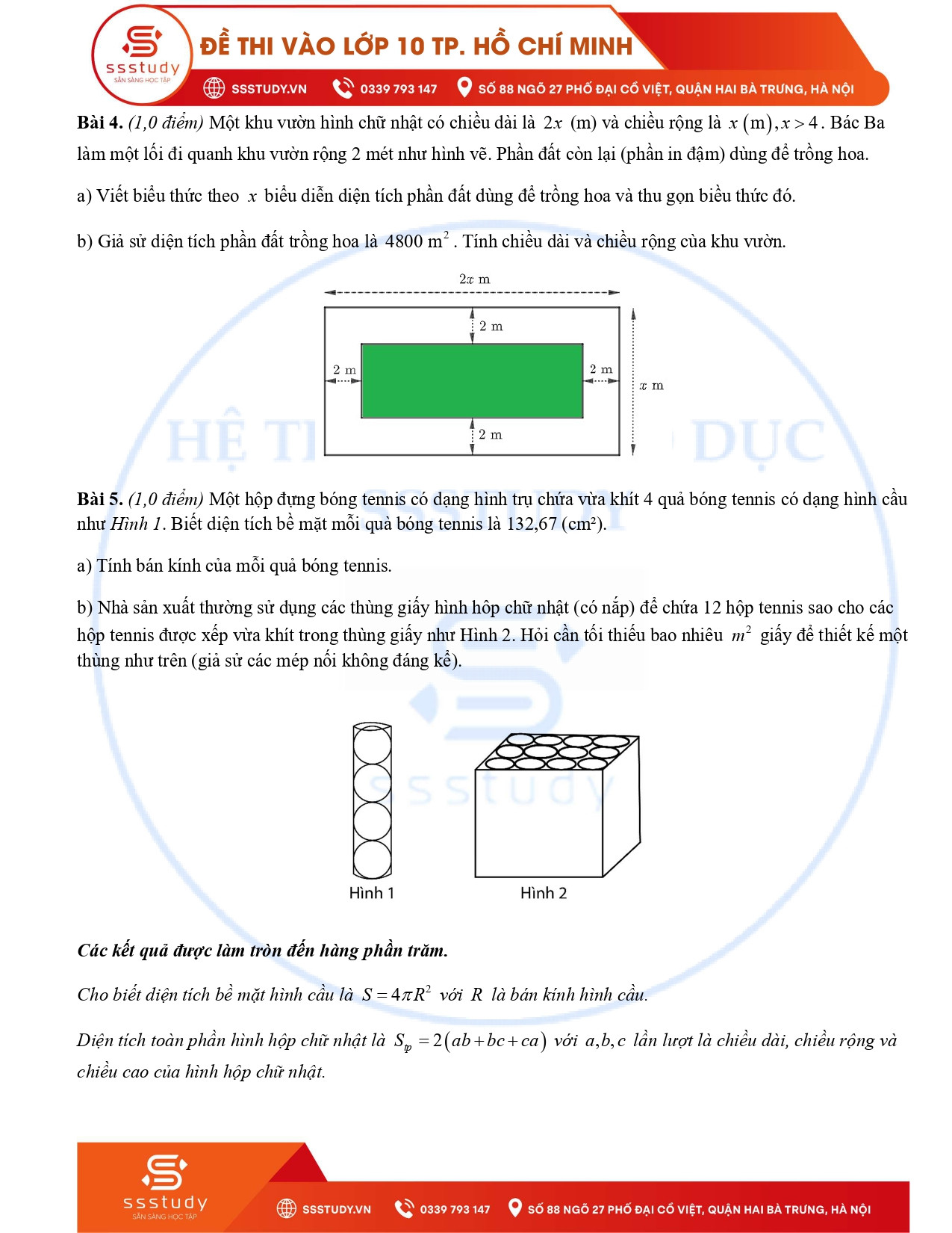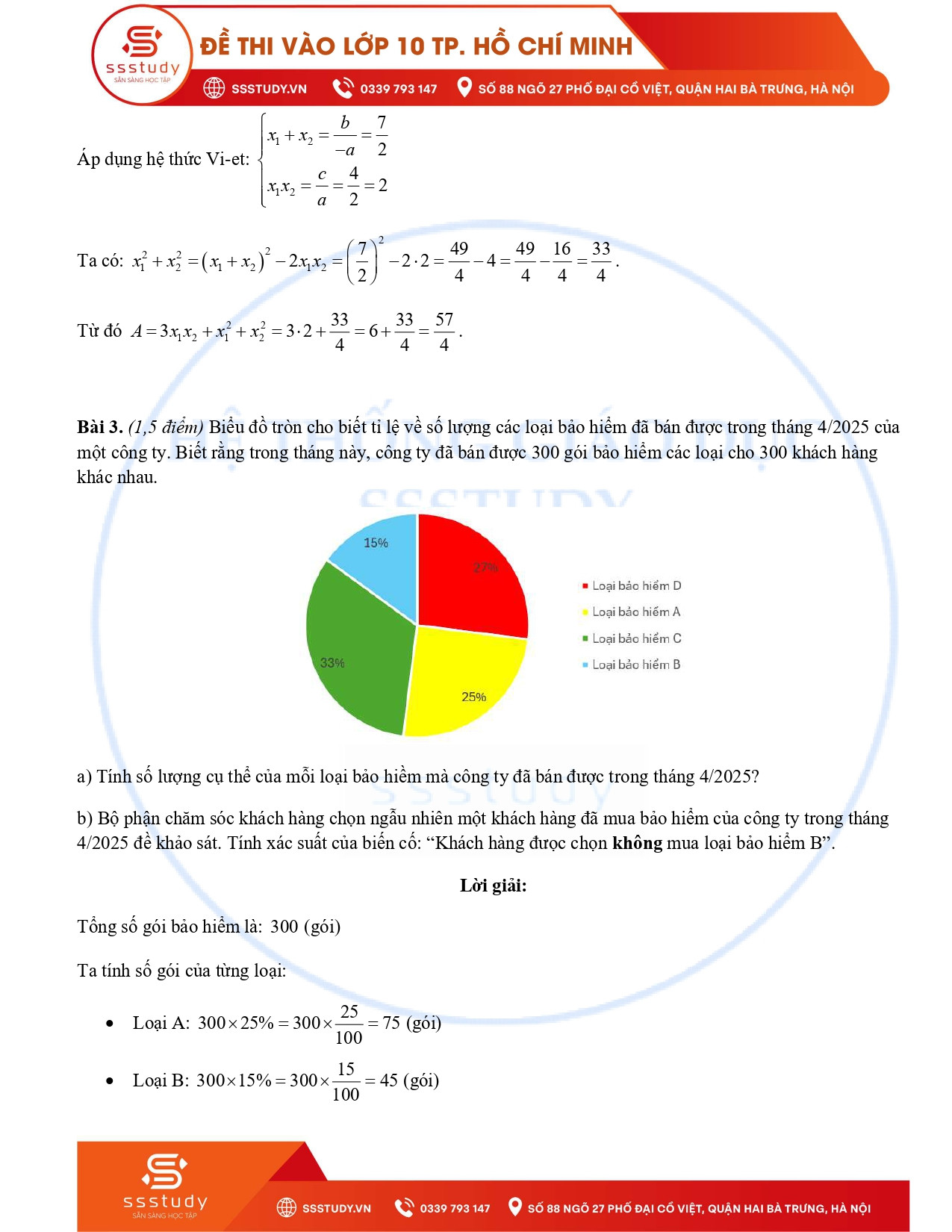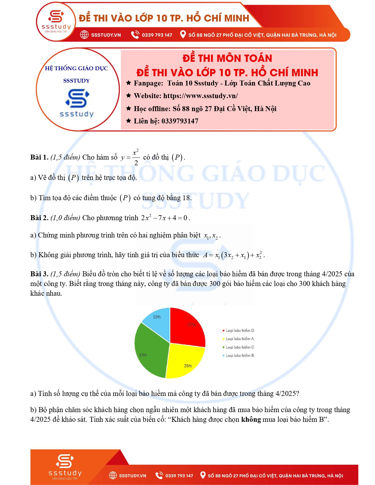 Đề môn Toán thi vào lớp 10 tại TP.HCM năm 2025 với thời gian làm bài 120 phút như sau: