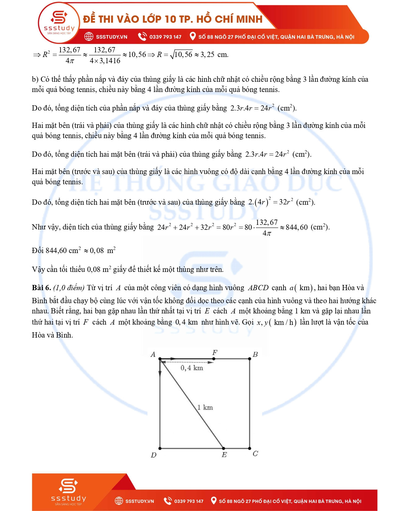 Sáng nay 7/6, môn thi cuối cùng của kì thi tuyển sinh vào lớp 10 của Sở GD&ĐT TP.HCM đã diễn ra. Mời thí sinh tham khảo đáp án đề thi môn Toán kì thi tuyển sinh vào lớp 10 năm học 2025 - 2026 do Hệ thống giáo dục SSStudy thực hiện.
