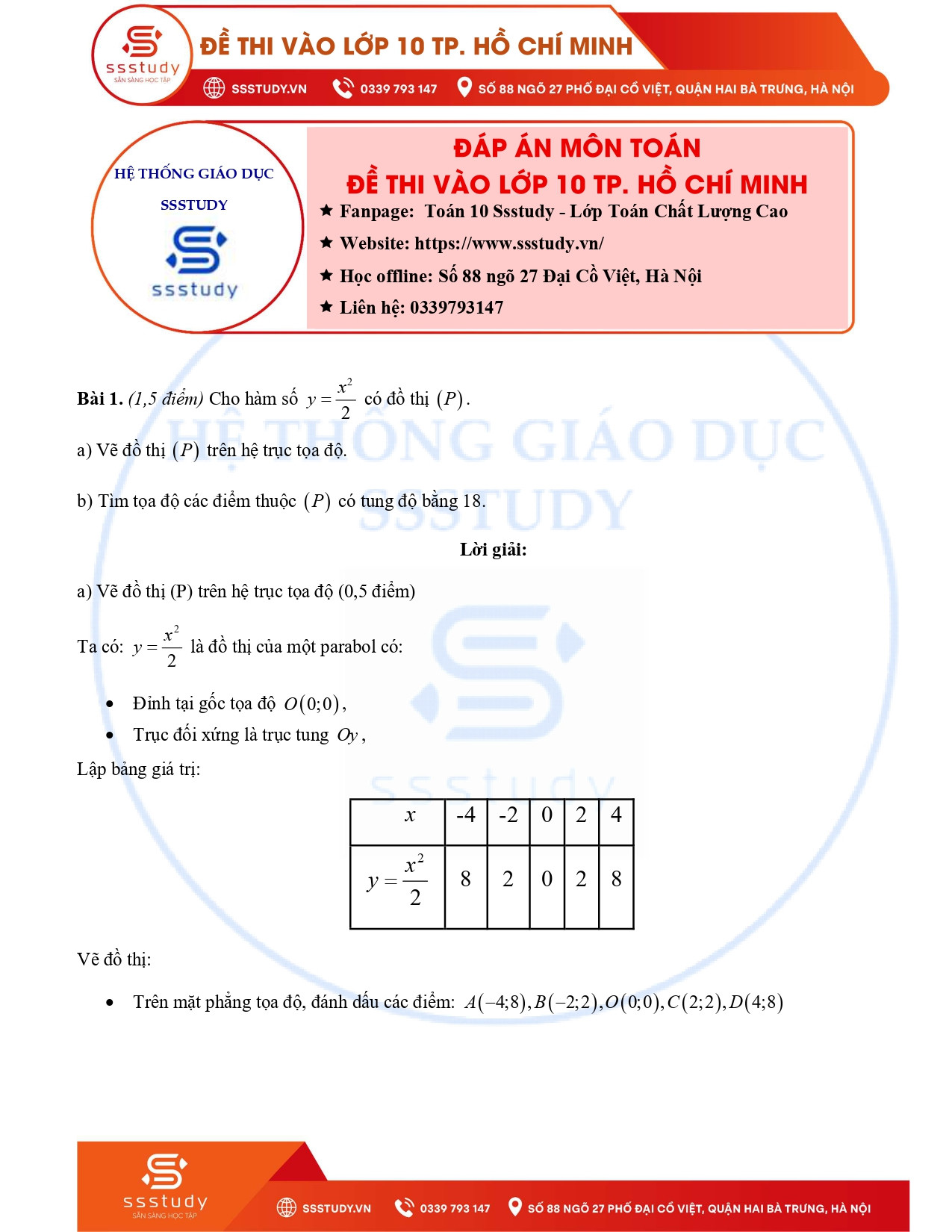 Dưới đây là đáp án tham khảo cho đề thi này được thực hiện bởi đội ngũ giáo viên tại Hệ thống giáo dục SSStudy: