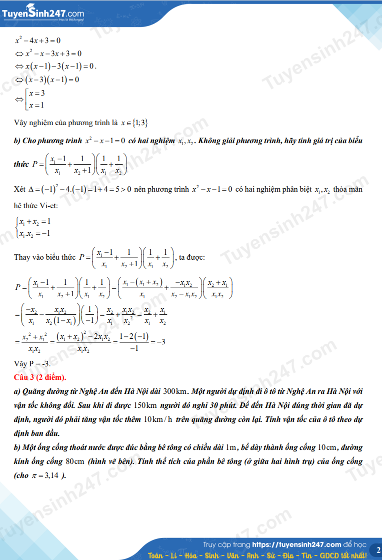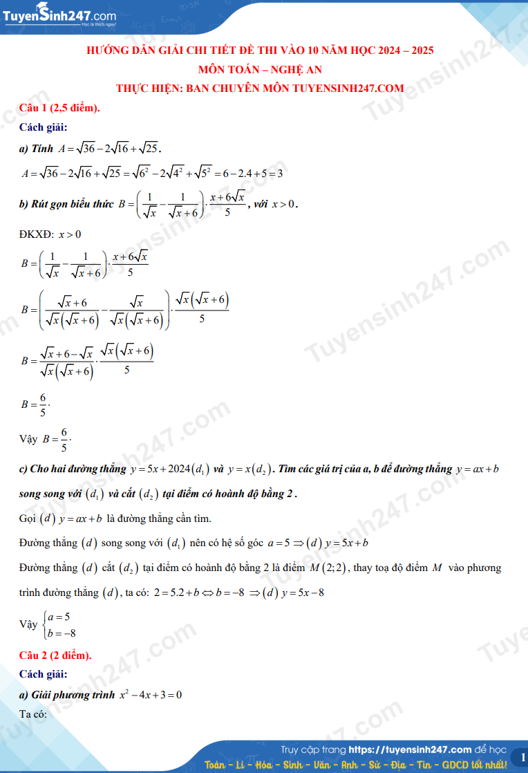 | Đề thi môn Toán vào lớp 10 năm 2024 tại Nghệ An. |