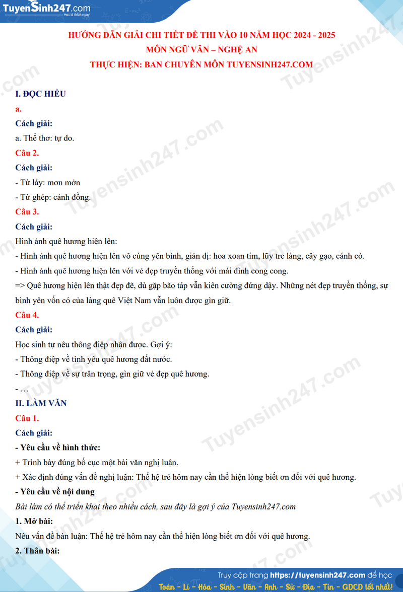 | Đáp án tham khảo môn Ngữ văn do Tuyensinh247.com thực hiện. |