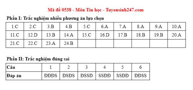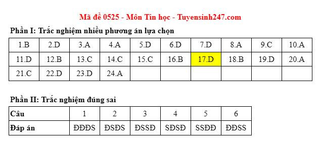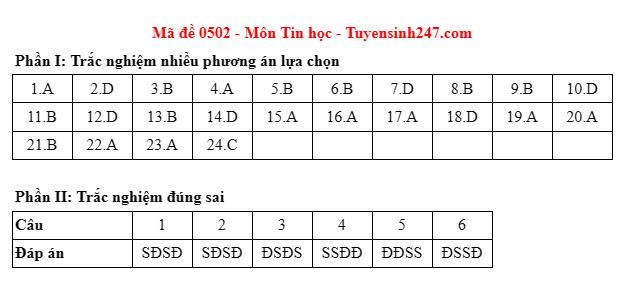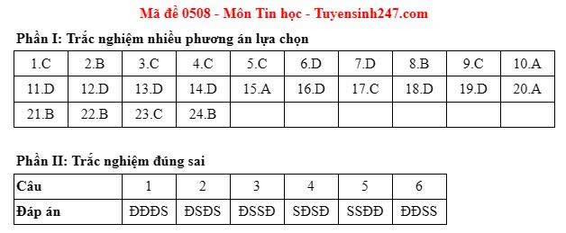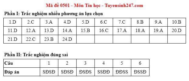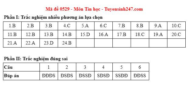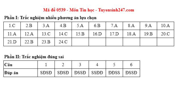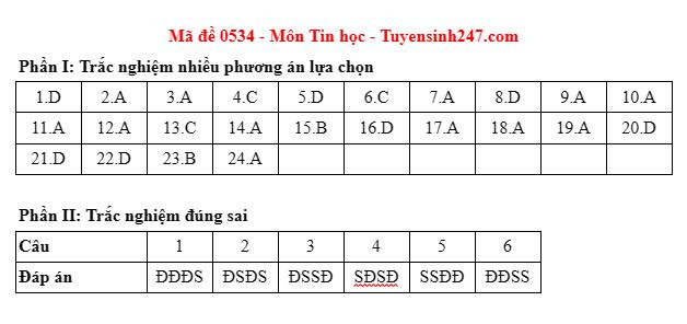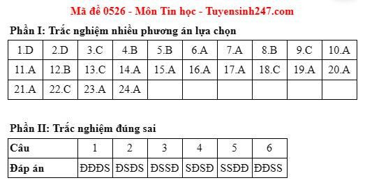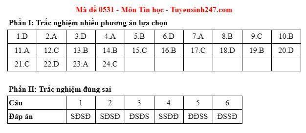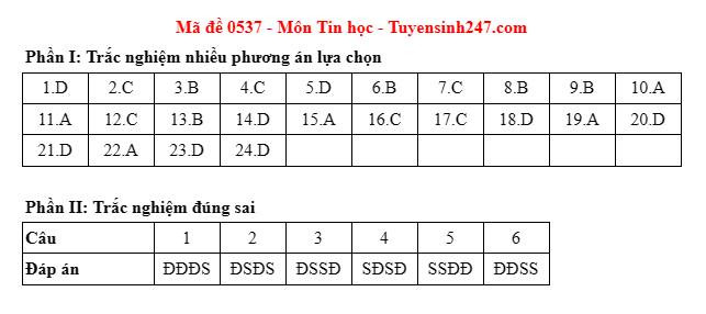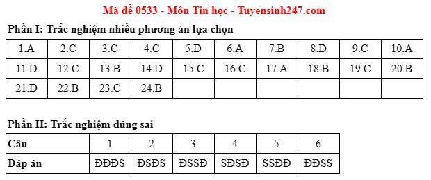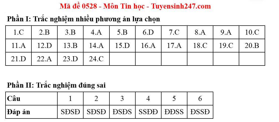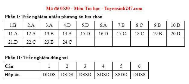 Dưới đây là đáp án tham khảo môn Tin học do hệ thống tuyensinh247.com thực hiện, mời thí sinh và phụ huynh theo dõi: