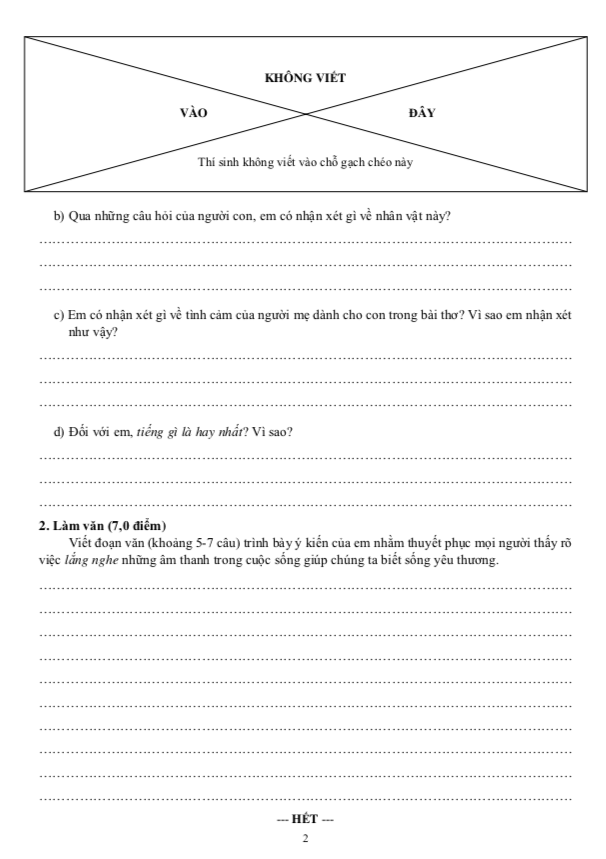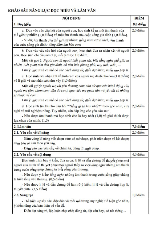 Đề khảo sát năng lực đọc hiểu và làm văn
