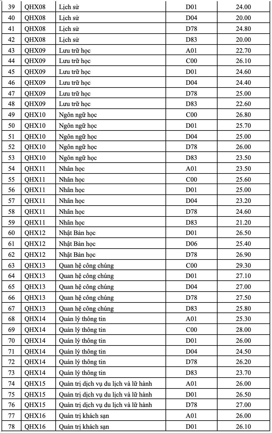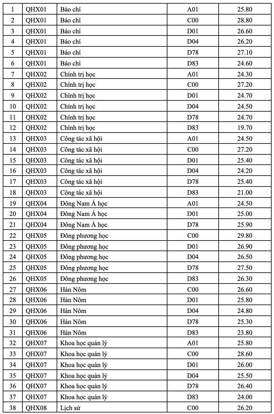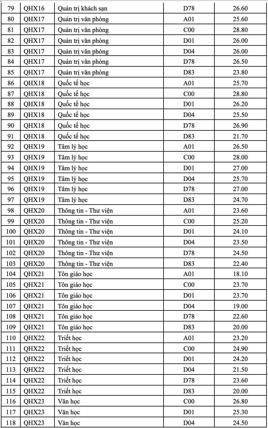 Điểm chuẩn trường ĐH KHXH&NV: