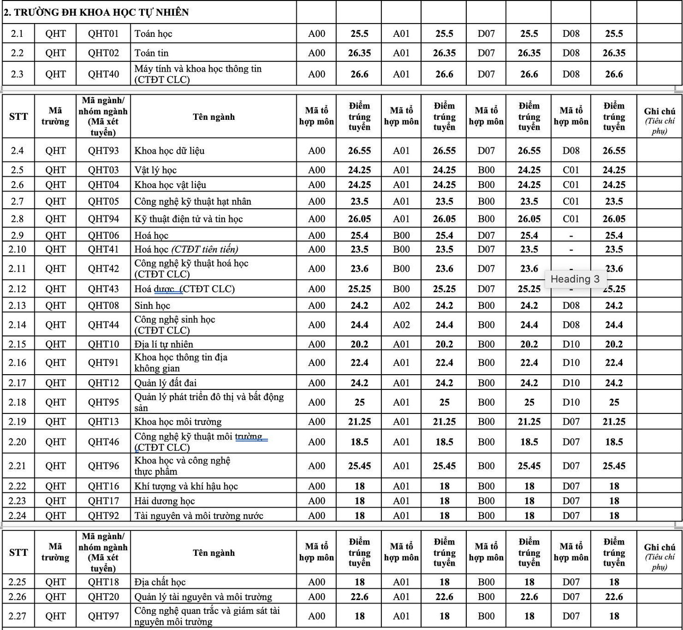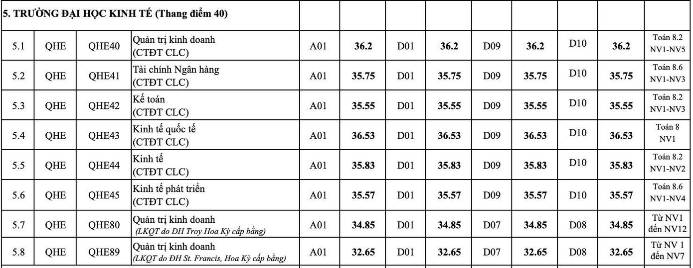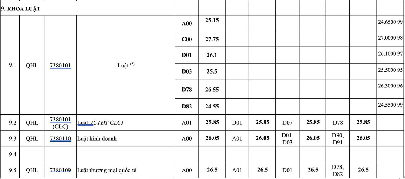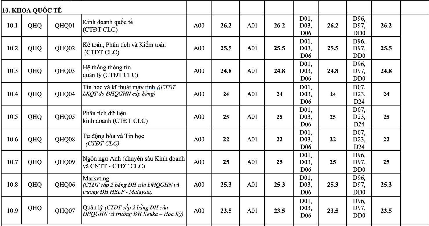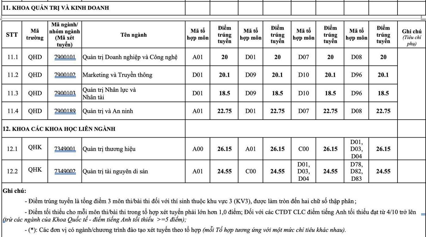Điểm chuẩn 12 trường đại học, khoa trực thuộc ĐHQG Hà Nội: