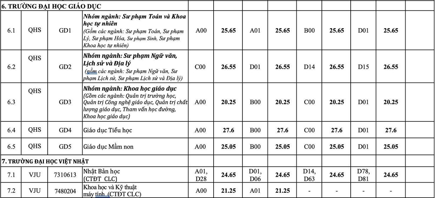 ĐHQG Hà Nội công bố điểm chuẩn 12 trường đại học, khoa trực thuộc