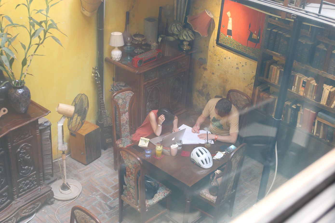 Không gian ấy bao gồm phong cảnh của quán, đồ uống, cách thức phục vụ và cả những hoạt động của các quan khách khác như nhóm bạn tụ tập trò chuyện râm ran cả một góc quán, đôi bạn đang tỉ tê tâm sự, những bạn sinh viên chăm chỉ chạy deadline,… Đôi khi ngồi gần bàn khác Minh Anh còn nghe được những câu chuyện thú vị ngoài lề.