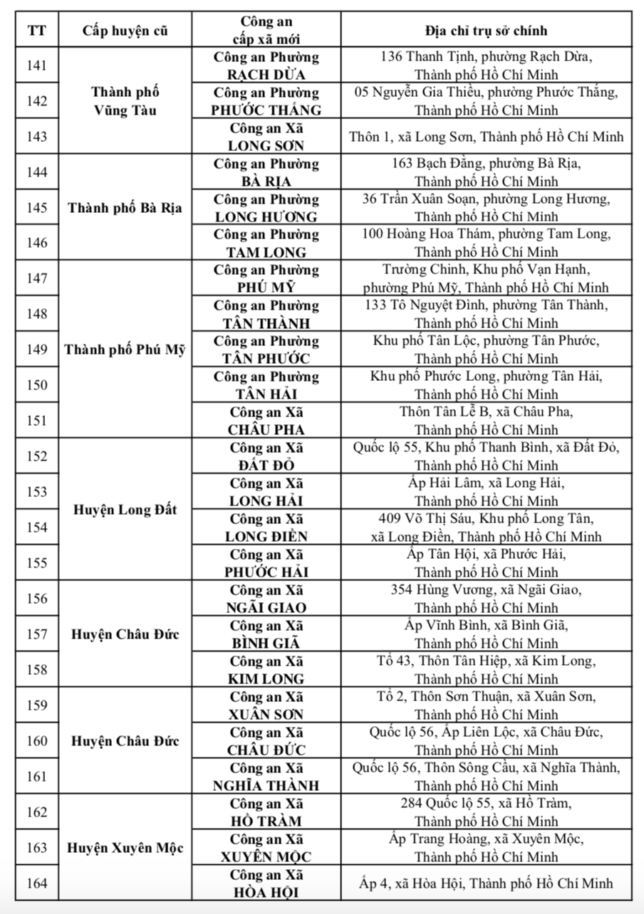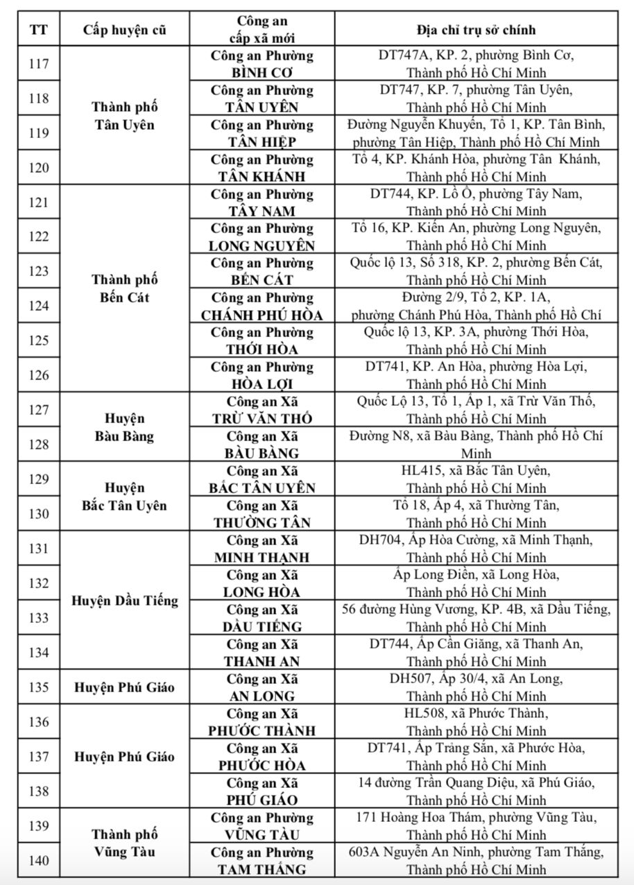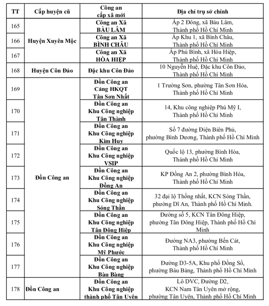 Để các đơn vị, tổ chức và toàn thể nhân dân biết và tiện liên hệ công tác khi cần thiết, Công an TPHCM thông báo danh sách địa chỉ trụ sở chính của 167 Công an cấp xã, 1 đặc khu và 10 đồn công an thuộc Công an TPHCM.