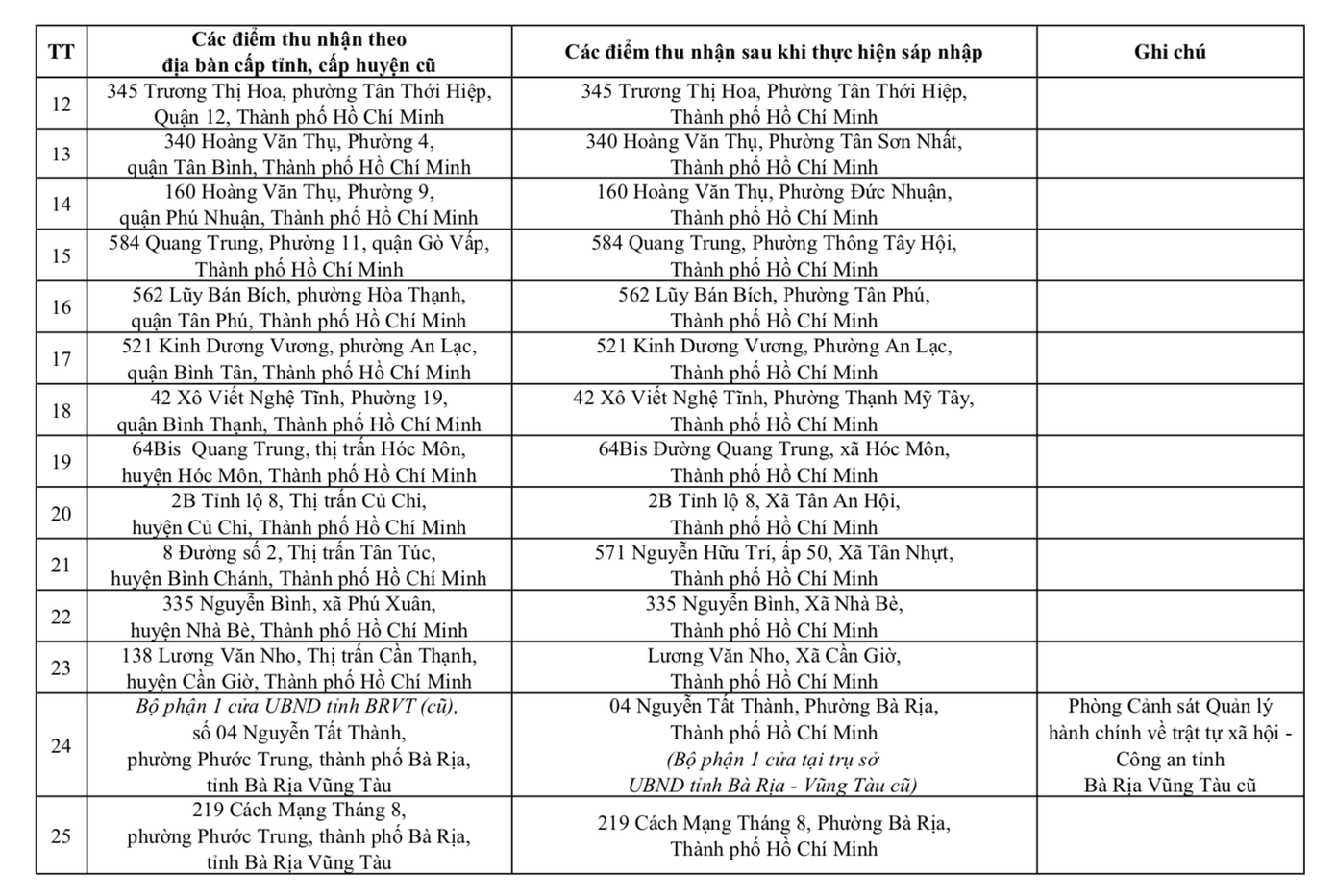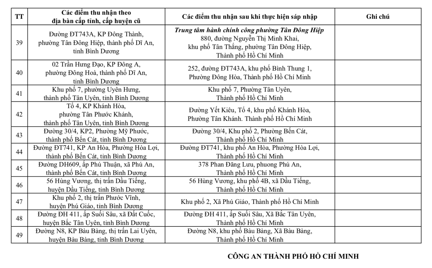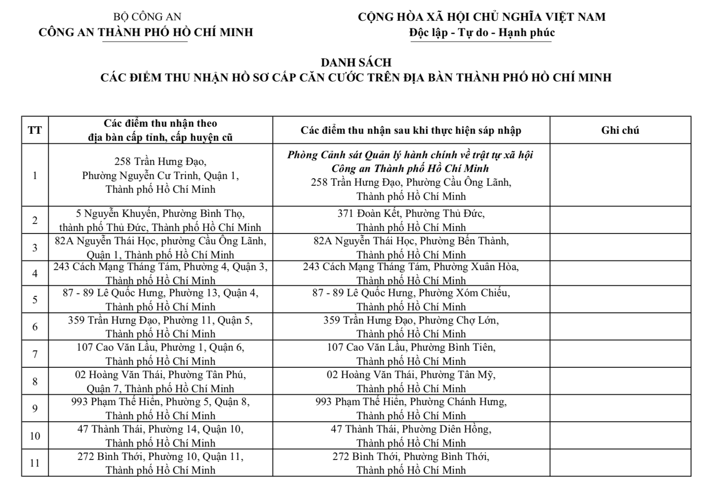 Ngoài ra, Công an TPHCM cũng cung cấp danh sách 49 điểm thu nhận hồ sơ cấp căn cước trên địa bàn thành phố.