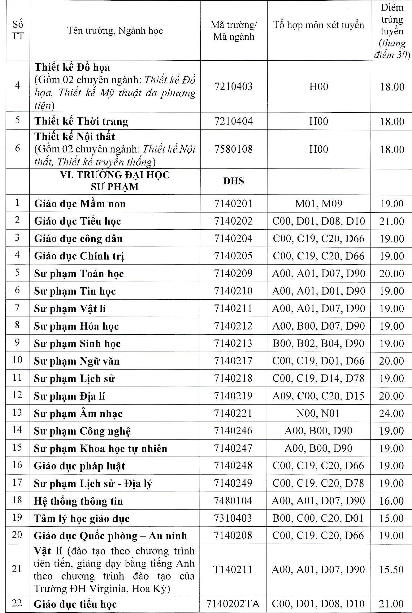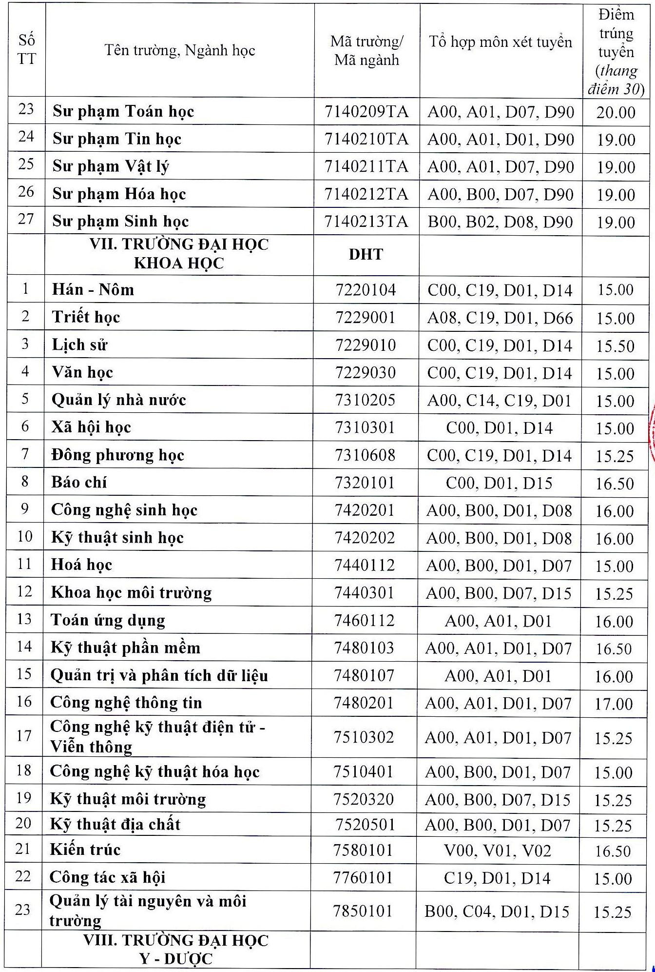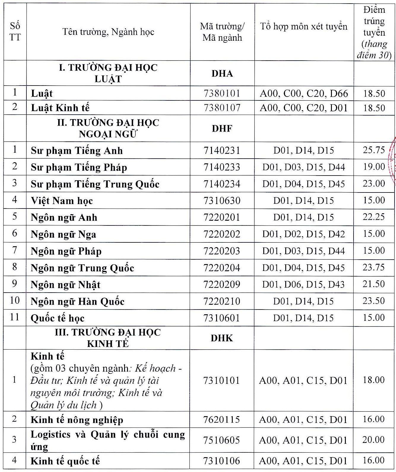| Điểm chuẩn các ngành của các trường thành viên ĐH Huế. |