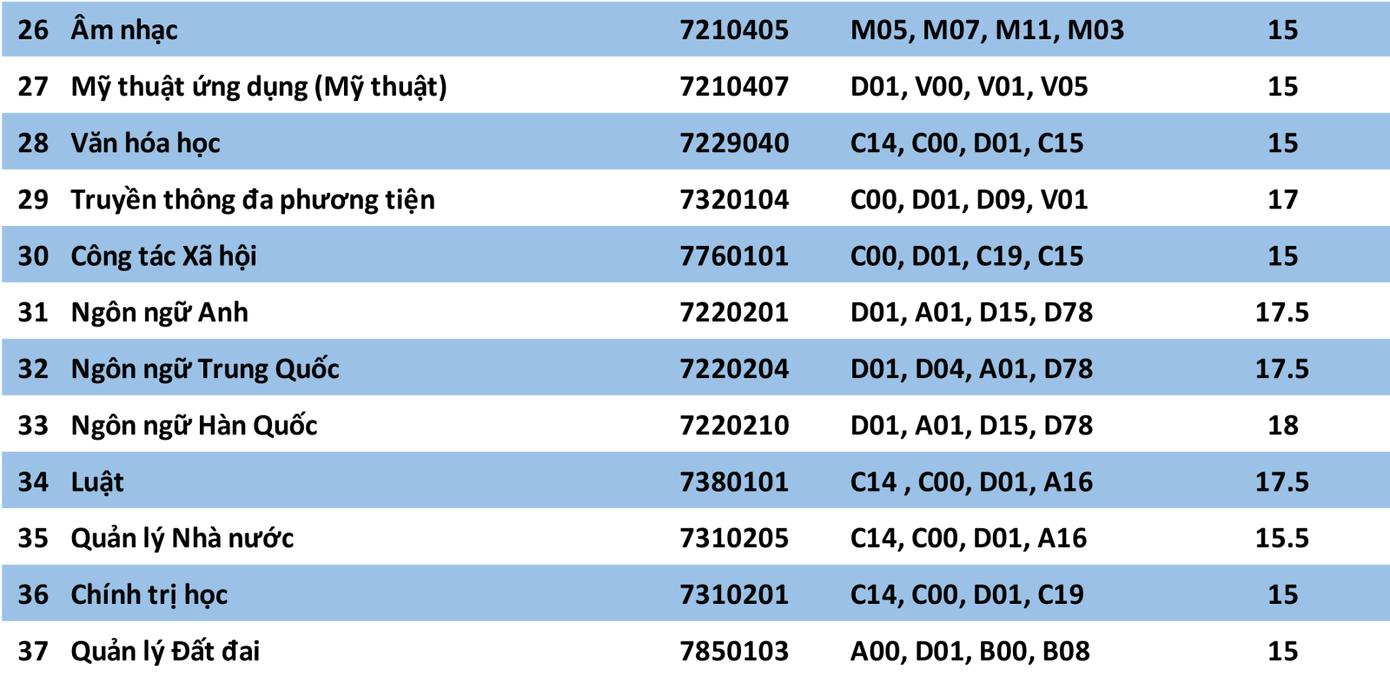 Điểm chuẩn trúng tuyển các ngành của trường ĐH Thủ Dầu Một theo bảng sau:
