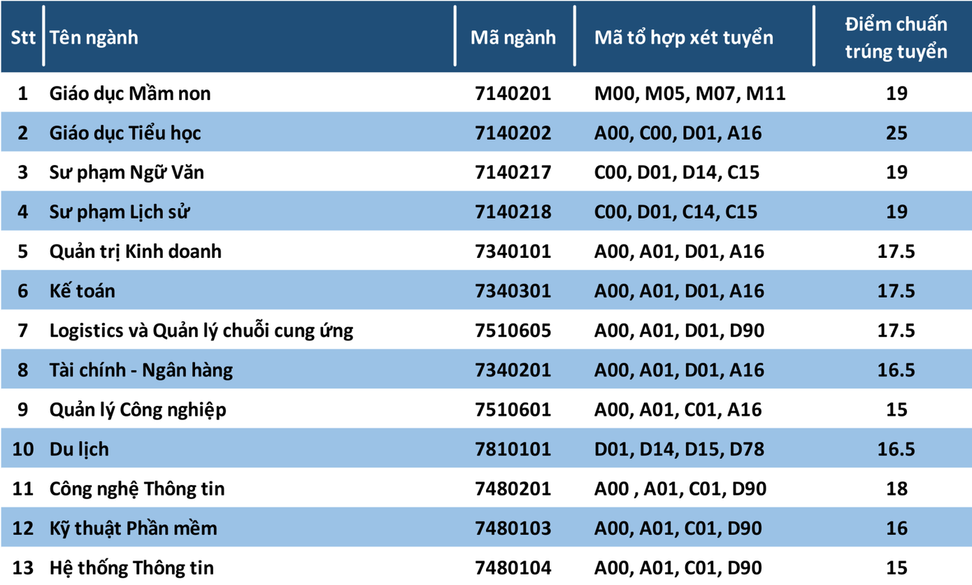 Nhìn chung mặt bằng điểm chuẩn của trường tương đối thấp, trong đó nhiều ngành điểm trúng tuyển là 15 điểm. Ngành có điểm chuẩn trúng tuyển cao nhất là ngành Giáo dục tiểu học với 25 điểm. Các ngành đào tạo giáo viên của trường có điểm trúng tuyển cao là Giáo dục Mầm non, Sư phạm Ngữ văn, Sư phạm Lịch sử 19 điểm. Có đến 19 ngành cùng 15 điểm.