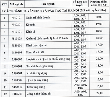 Mức điểm sàn này áp dụng cho các ngành ngành tuyển sinh và đào tạo tại Hà Nội và Phân hiệu của trường tại TP. HCM.