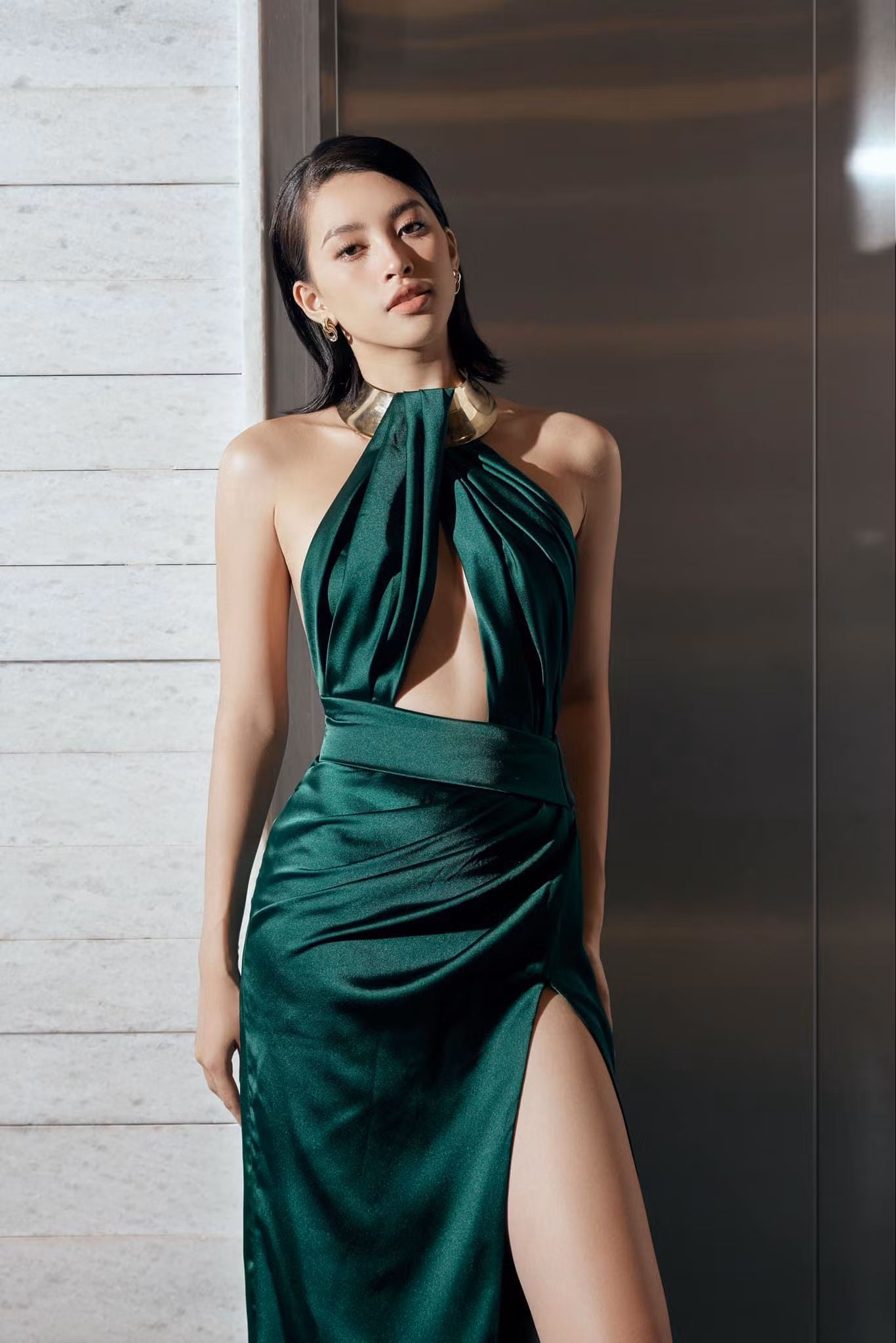 | Hoa hậu Tiểu Vy diện váy xẻ chân ngực nóng bỏng. |