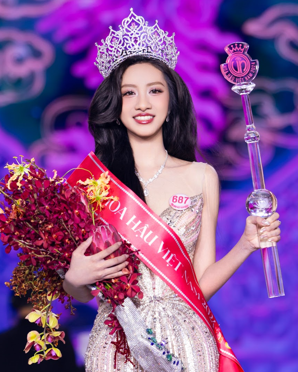 Hà Trúc Linh, người đẹp sinh năm 2004, chính thức đăng quang Hoa hậu Việt Nam 2024. Danh hiệu Á hậu 1 thuộc về Trần Ngọc Châu Anh, thiếu úy quân nhân đầu tiên đạt thứ hạng cao tại một đấu trường nhan sắc quốc gia. Nguyễn Thị Vân Nhi, cô gái đến từ thành phố cảng Hải Phòng, được xướng tên ở vị trí Á hậu 2.