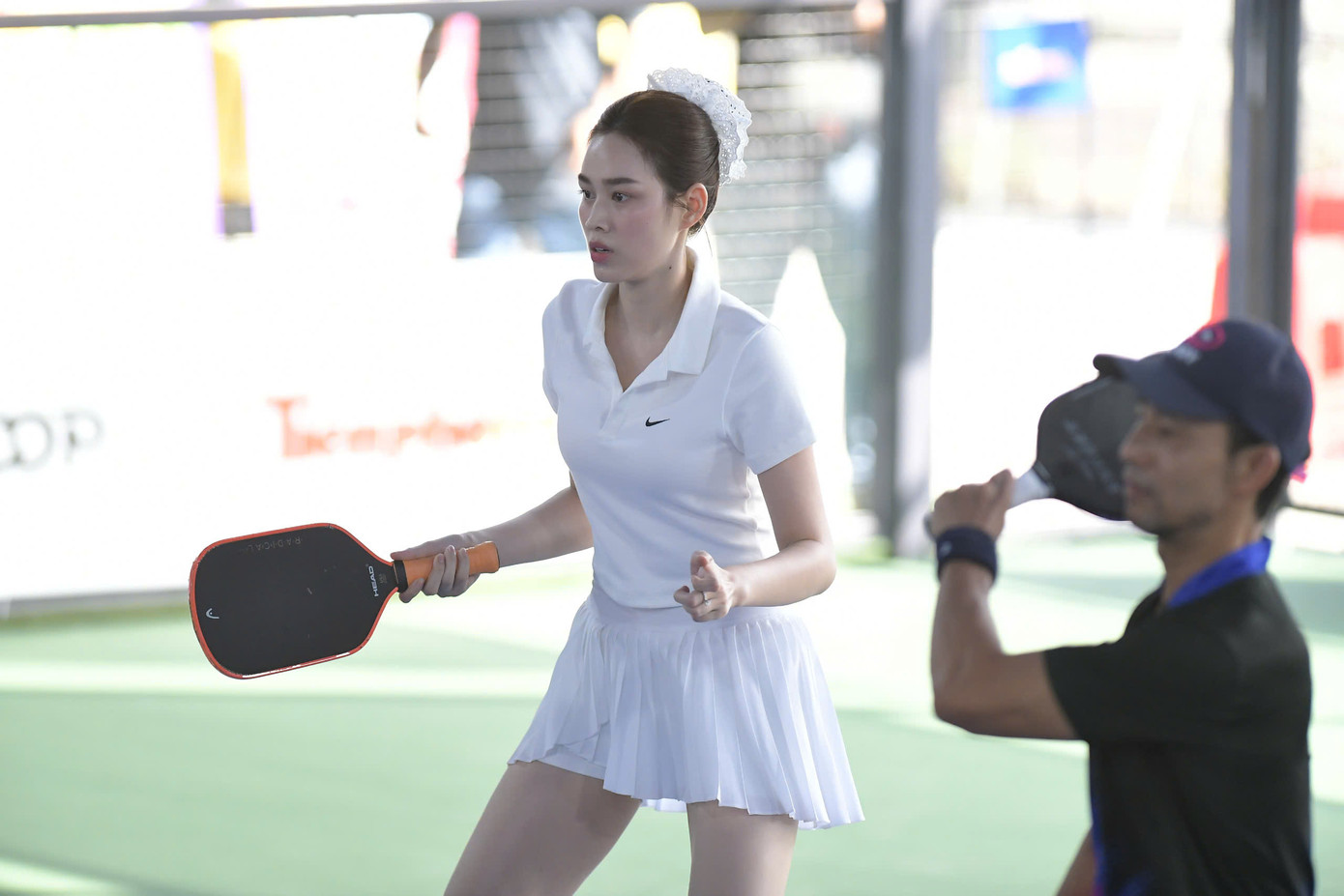 | Đỗ Thị Hà khai màn Giải Vô địch Pickleball Việt Nam 2025 - Cúp Hyundai Thành Công. Hoa hậu Việt Nam 2020 thể hiện sự tập trung trên sàn đấu. |