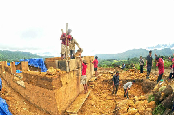 Móng nhà được xếp từ những viên đá to, đặt ngay trên mặt đất bằng mà không phải đào sâu xuống, sau đó chọn ván khuôn đặt xuống nẹp lại cho chắc như đổ bê tông. Để có bốn bức tường đất bao quanh nhà cứng như thép nguội, đạn bắn không thủng, bà con phải chọn loại đất núi có độ kết dính cao.