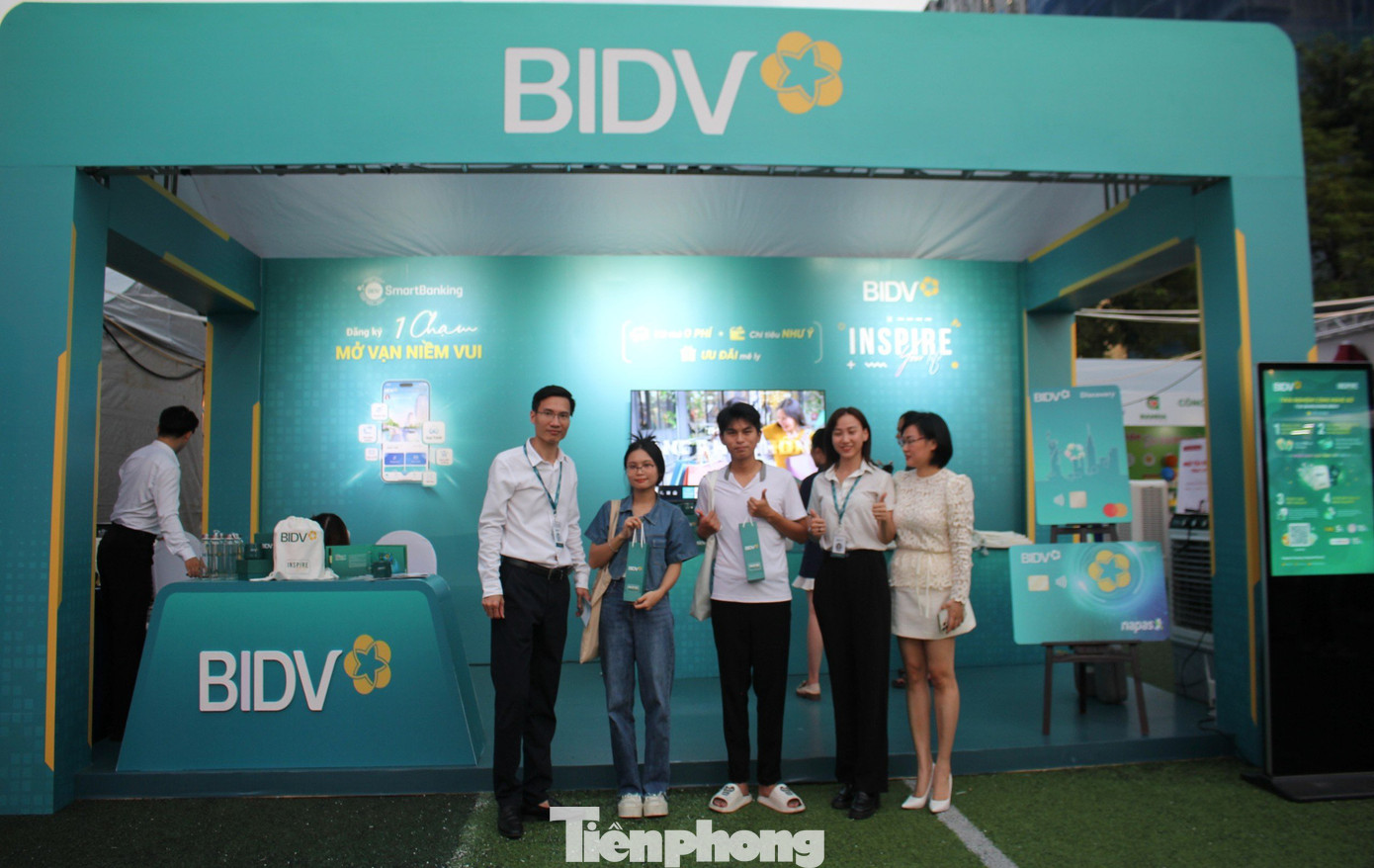 | Gian hàng của HD Bank được nhiều bạn trẻ rủ nhau đến chụp ảnh kỉ niệm. |