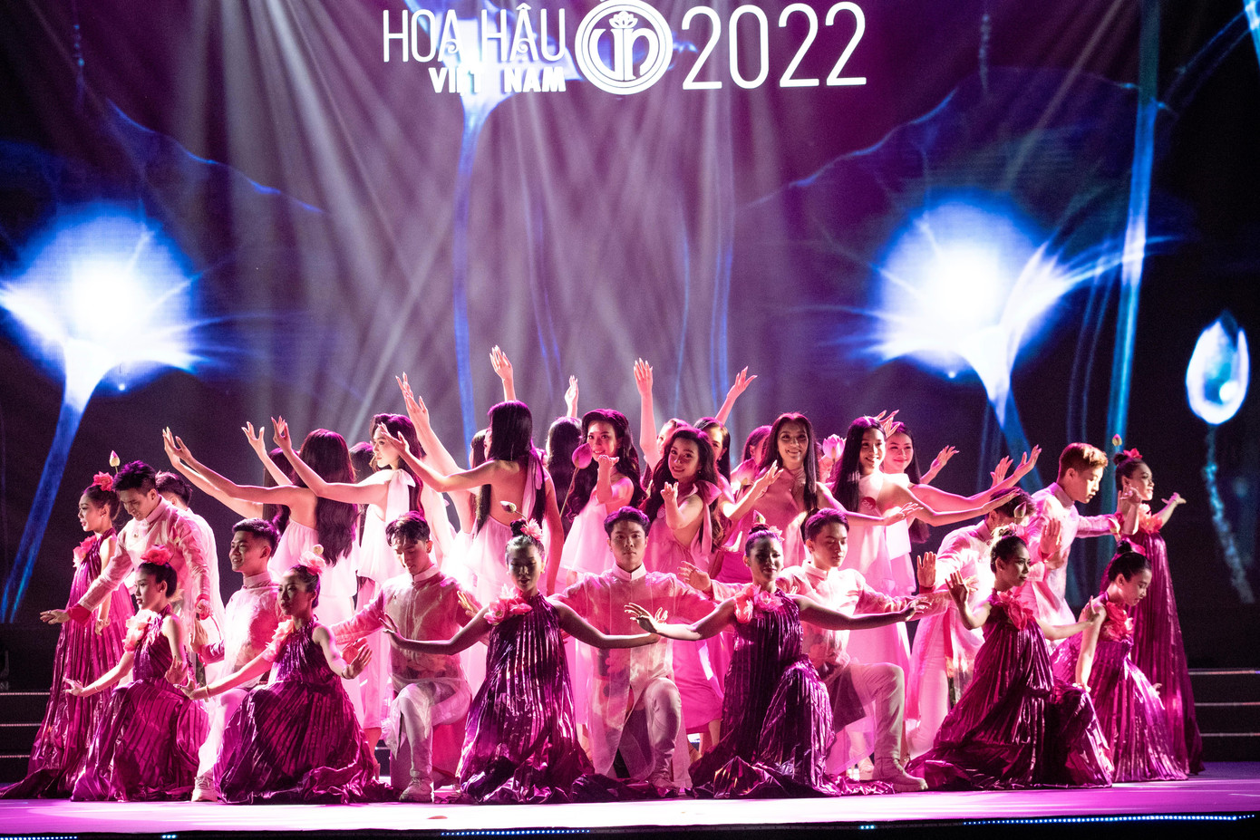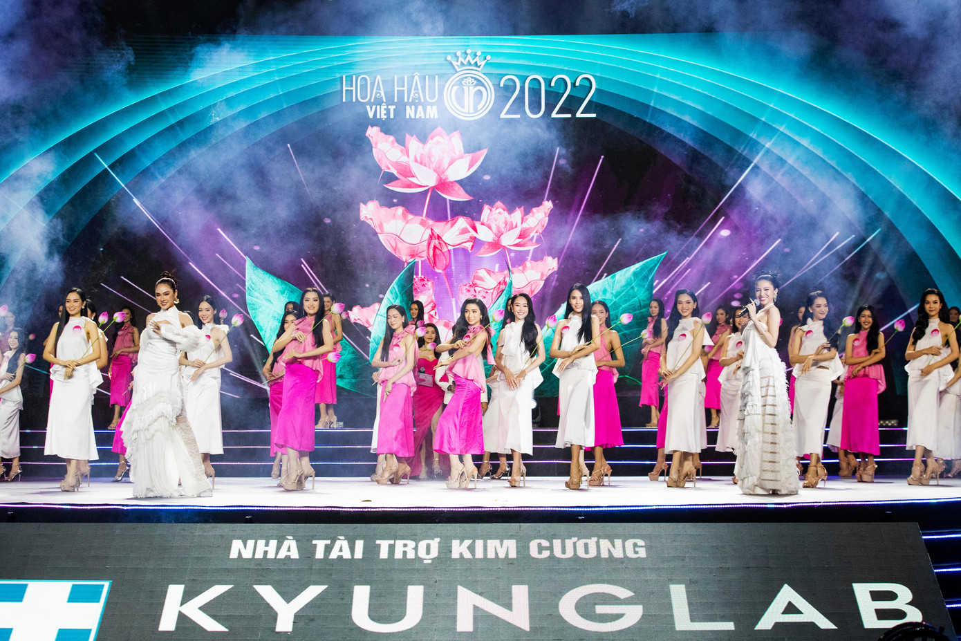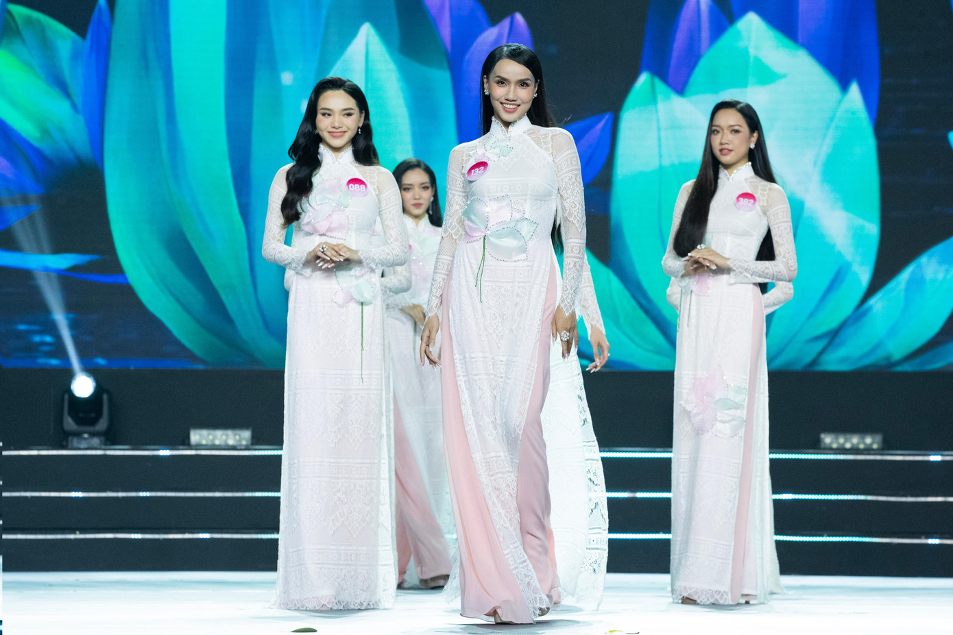 Với sự dẫn dắt của MC Nguyên Khang và Á hậu Quỳnh Châu, 56 thí sinh của Hoa hậu Việt Nam 2022 bước vào phần thi trang phục áo dài với bộ sưu tập Bạch liên của NTK Song Toàn, bộ sưu tập Khuê các của NTK Đặng Trọng Minh Châu và bộ sưu tập của NTK Việt Hùng.