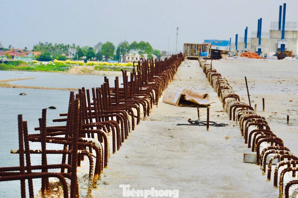 | Theo ghi nhận của PV, từ tháng 3-7 là khoảng thời gian sông Trà Khúc cạn dòng, trời nắng ráo, điều kiện thuận lợi nhất để thi công Dự án Đập dâng hạ lưu sông Trà Khúc. Tuy nhiên theo quan sát, trên trên đại công trình nghìn tỷ này có rất ít công nhân làm việc, công trường ngổn ngang vật liệu xây dựng, sắt thép hoen gỉ sau một thời gian không được sử dụng và bảo quản. |