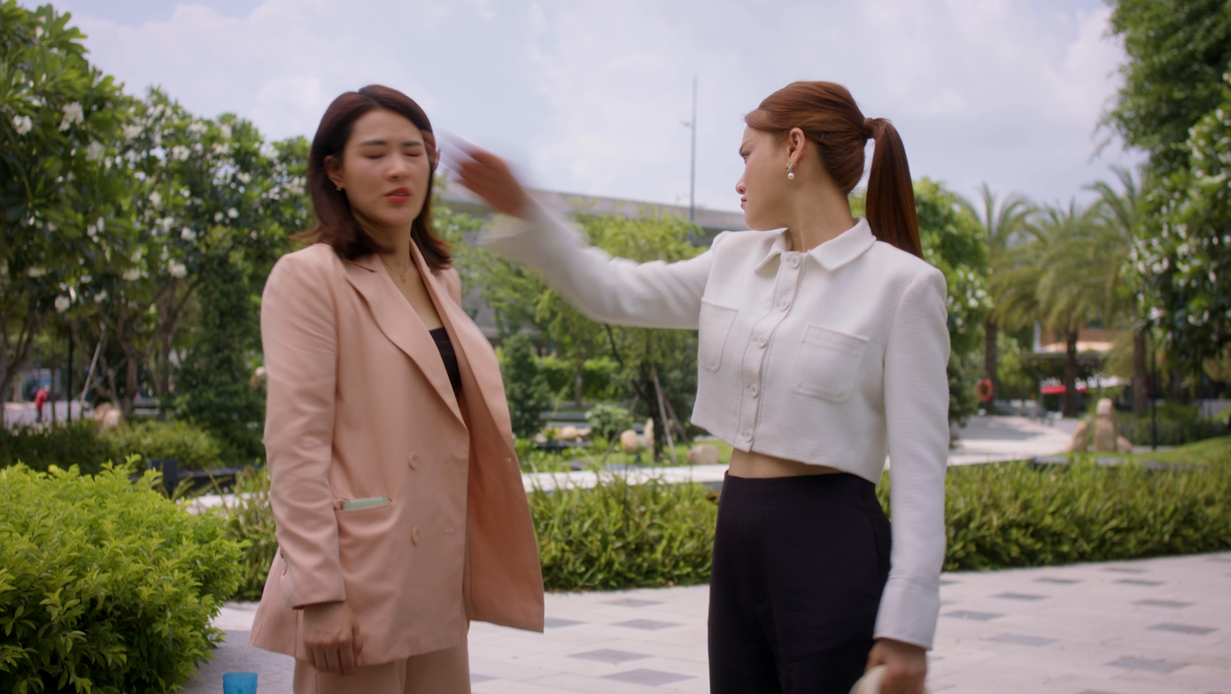 Chia sẻ về cảnh tát, Nhã Phương cho biết: “Diễn cảnh Minh Anh đánh Nhật Phương, ngày hôm sau Minh Trang sốt luôn. Khi Phương tát thật thì Minh Trang diễn rất thật. Bạn có cảm xúc rất mạnh với cảnh đó, cái tát đó cũng đúng mà”.
