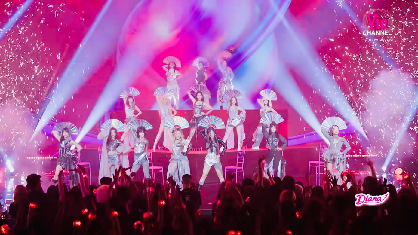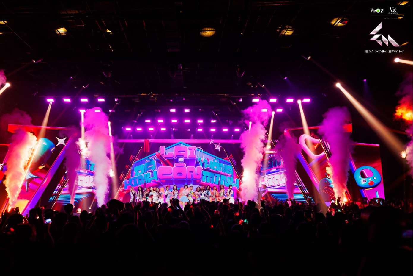 Đoạn điệp khúc được chỉnh sửa theo phong cách Disco, điện tử với nhịp điệu sôi động. Các "em xinh" kết hợp vũ đạo với quạt, tạo điểm nhấn qua màn nhảy quyến rũ trên ghế. Sân khấu được thiết kế với tông màu lạnh, ánh sáng neon, các yếu tố công nghệ cao, tạo không gian kiểu Futuristic độc đáo.