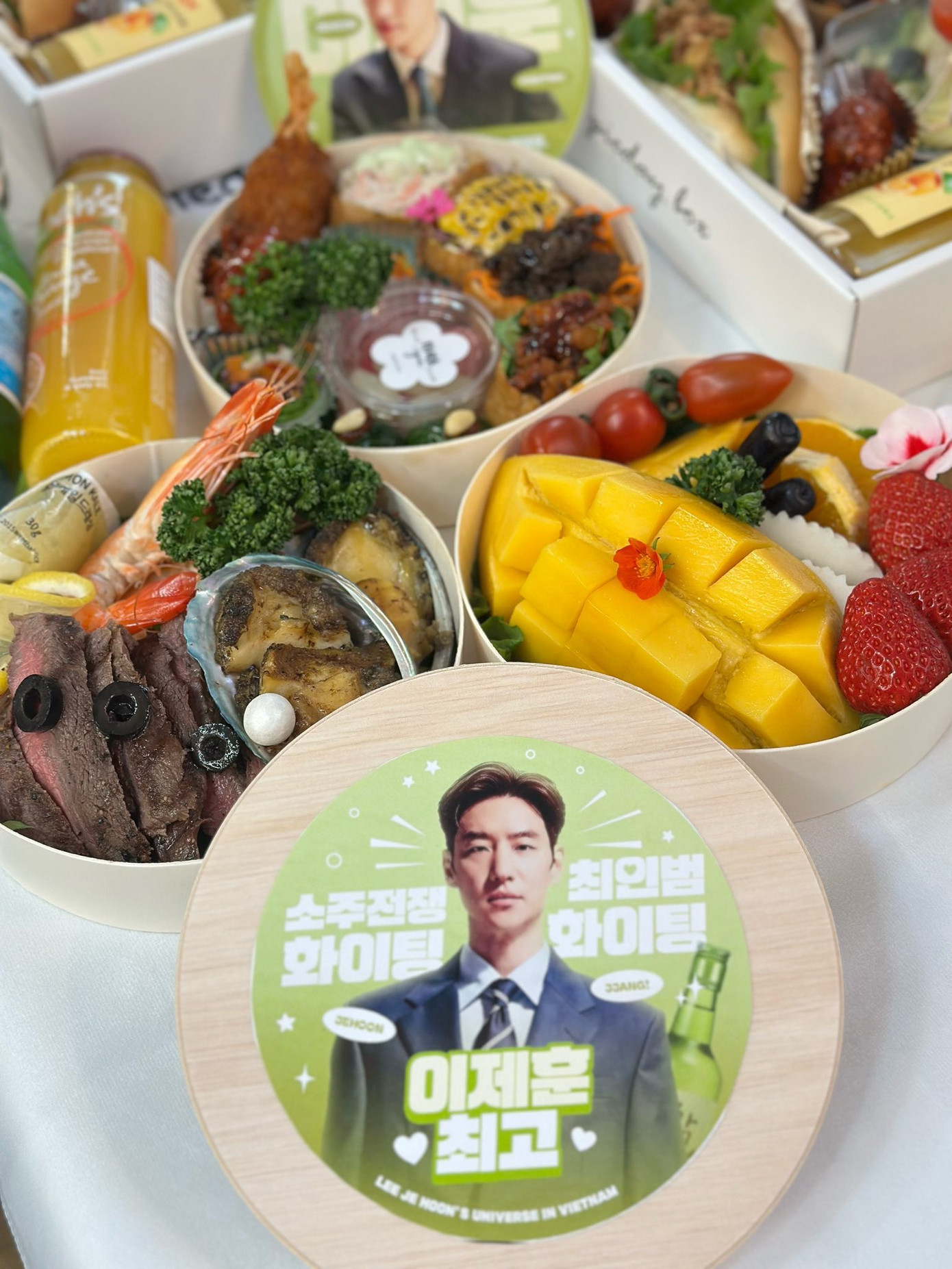 Đây là project do cộng đồng Lee Je Hoon’s Universe Vietnam thực hiện. Theo FC bật mí, ban đầu Lee Je Hoon’s Universe VN dự định sẽ gửi vòng hoa gạo đến địa điểm tổ chức, nhưng khi công ty quản lý của Lee Je Hoon cho biết địa điểm họp báo là ở rạp phim, FC đã nhanh chóng chuyển sang phương án gửi tặng hộp ăn trưa và đồ uống tới sự kiện.