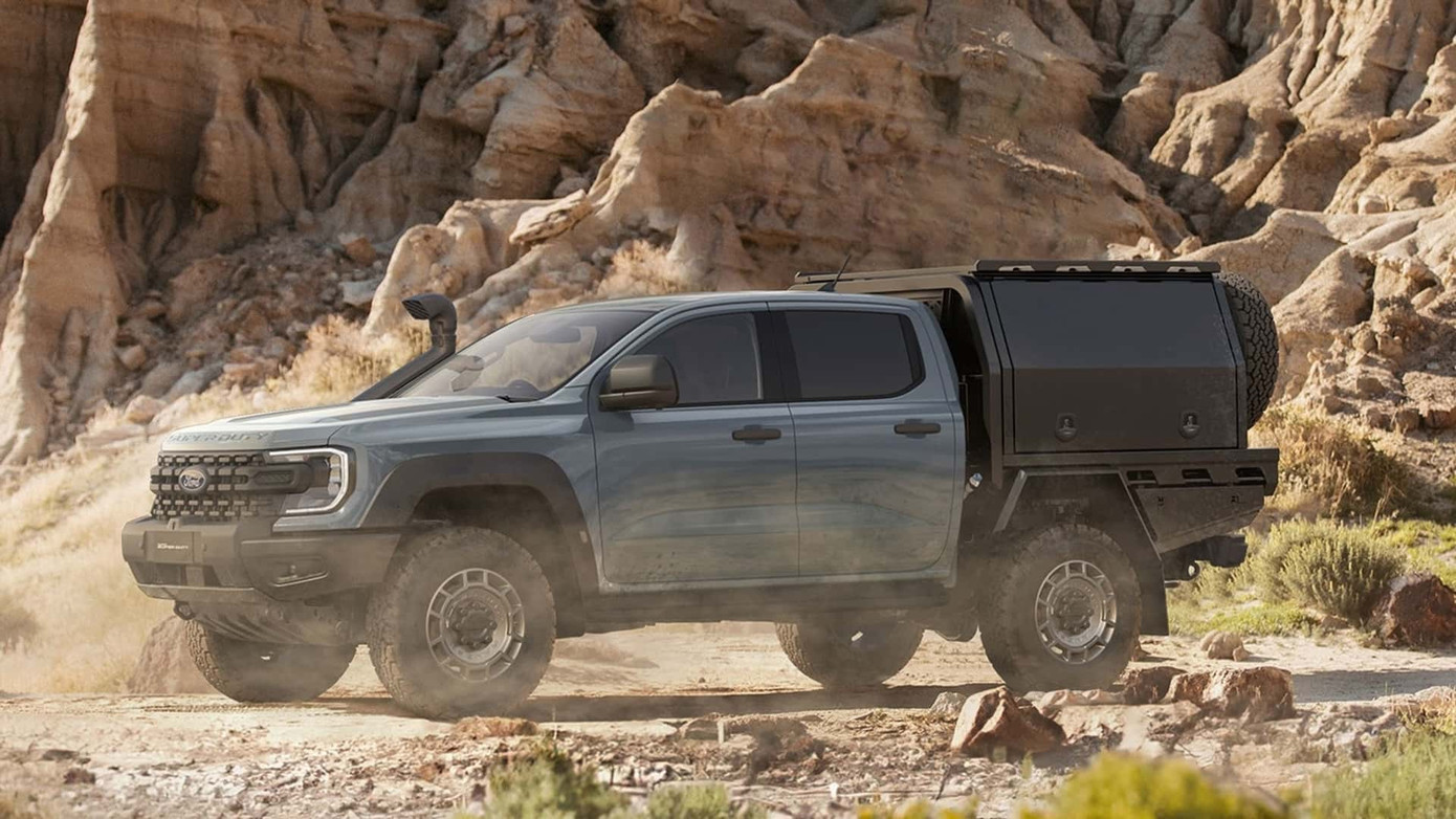 | Ford Ranger Super Duty phiên bản cabin đơn với thùng xe phía sau tùy chỉnh. |