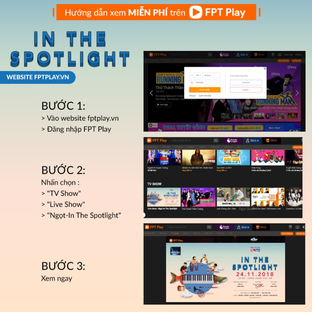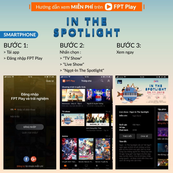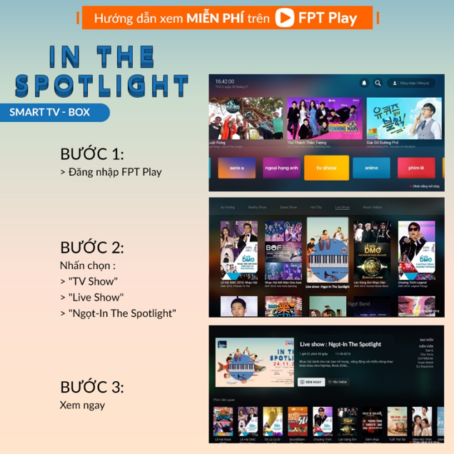 Hướng dẫn xem miễn phí liveshow Ngọt - In The Spotlight trên truyền hình Internet FPT Play.