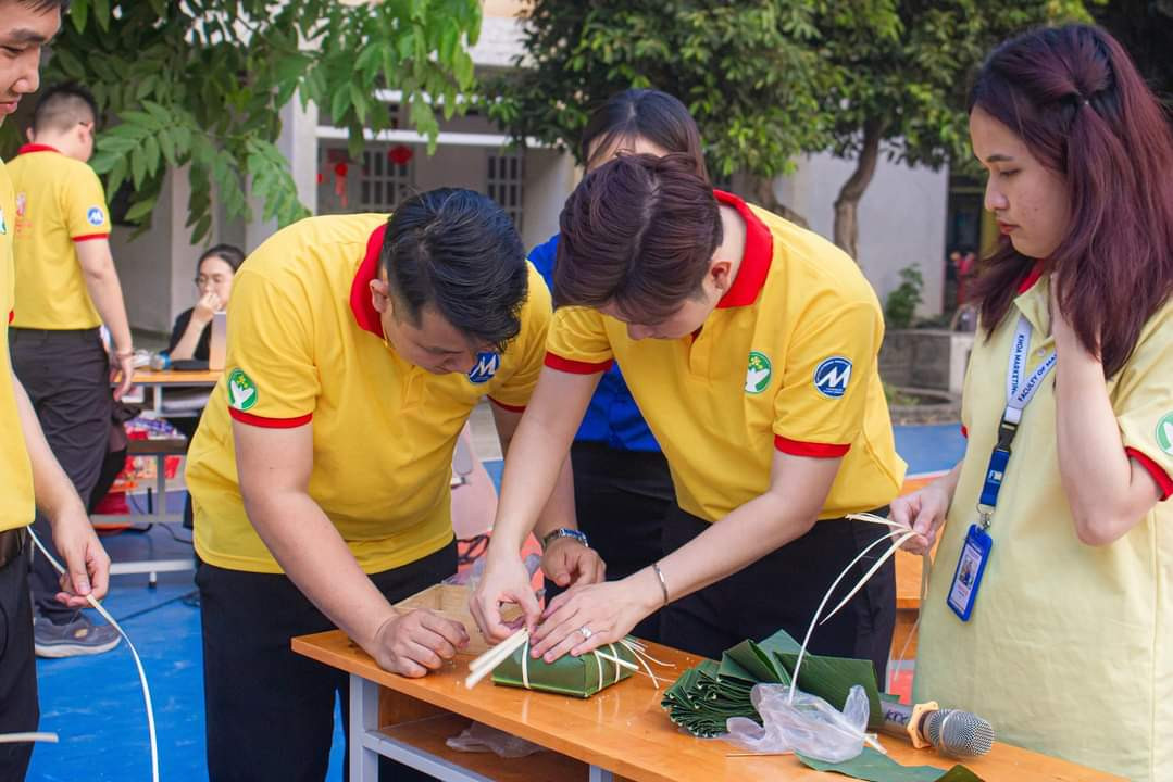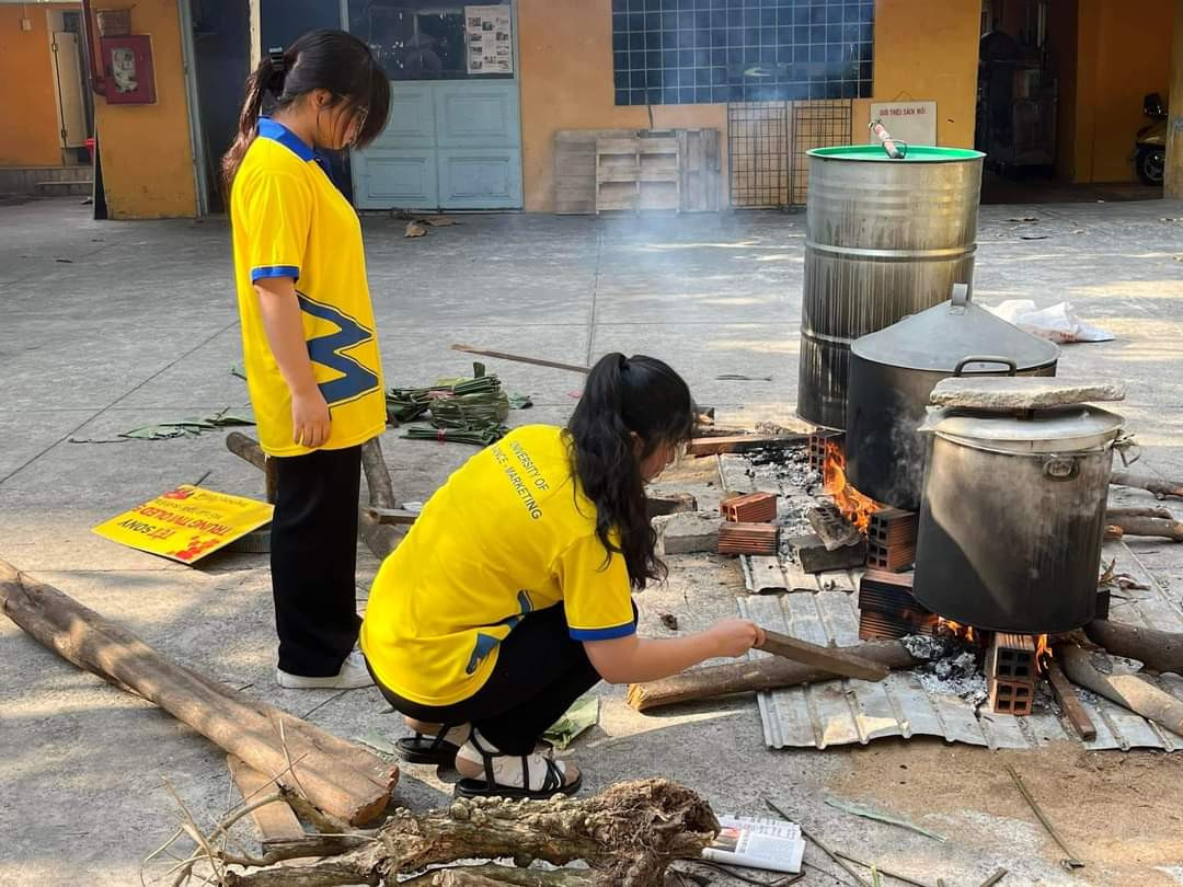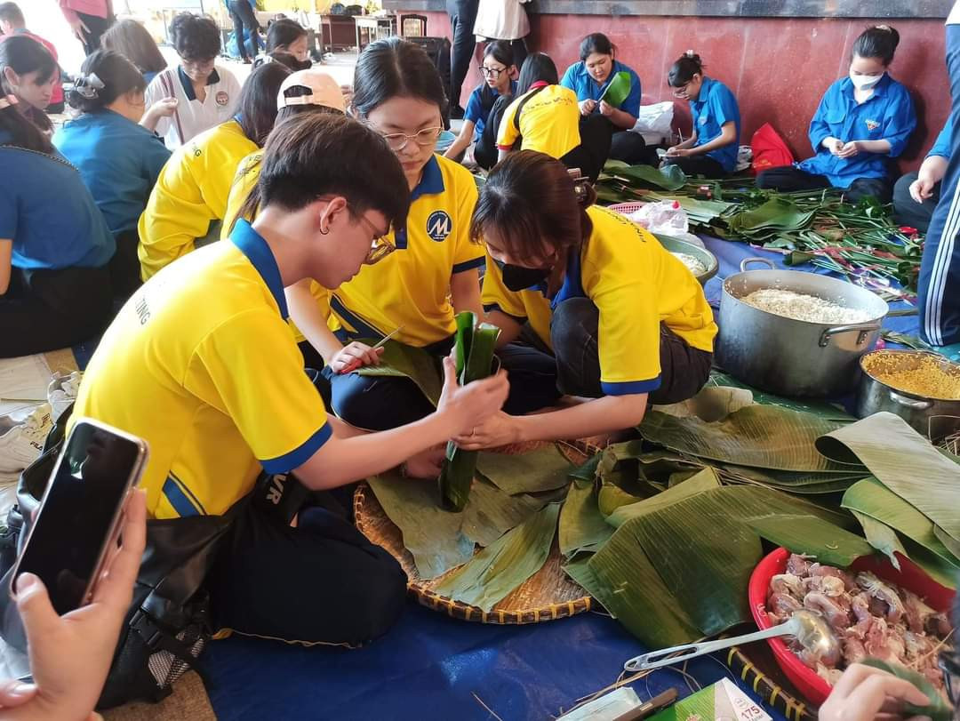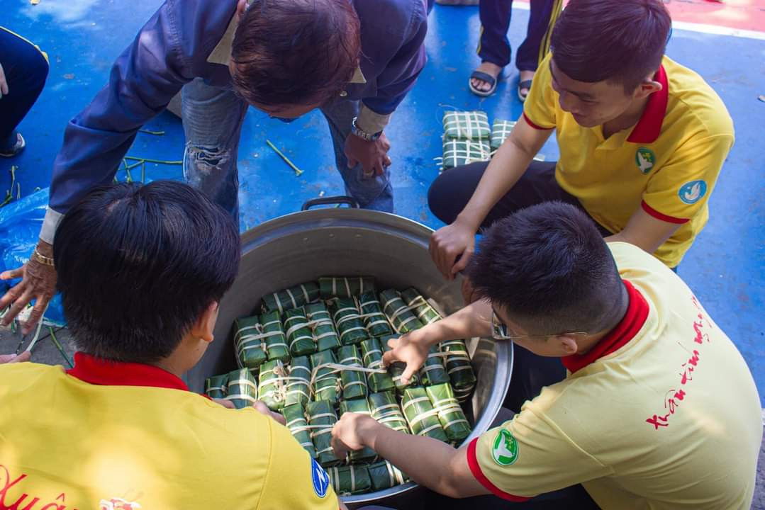 Ngoài ra, sinh viên trường cũng tổ chức gói bánh chưng cùng nhau. Hơn 500 bánh chưng đã được trao tận tay sinh viên khó khăn, cô chú làm bảo vệ và lao công ở trường. Hoạt động giúp sinh viên gắn kết hơn, những nụ cười làm vơi bớt đi nỗi nhớ nhà.