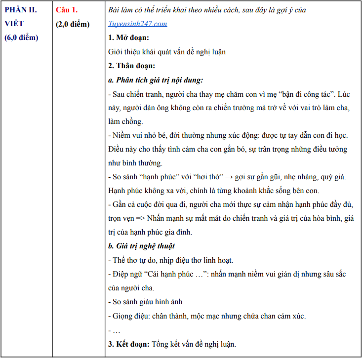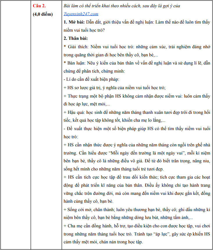 | Đáp án tham khảo môn Ngữ văn do Tuyensinh247 thực hiện. |