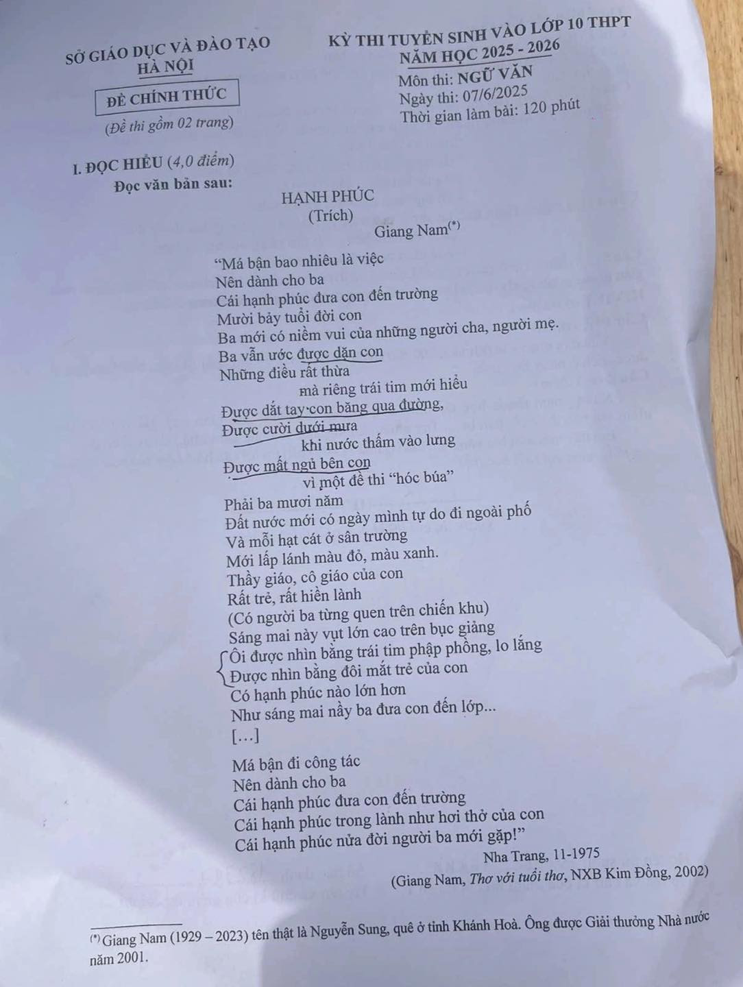 HHTO - Sáng 7/6, Hà Nội tổ chức kỳ thi vào lớp 10 công lập năm 2025, dưới đây là đề thi môn ngữ Văn có đáp án chi tiết năm học 2025 - 2026 do Tuyensinh247 thực hiện.