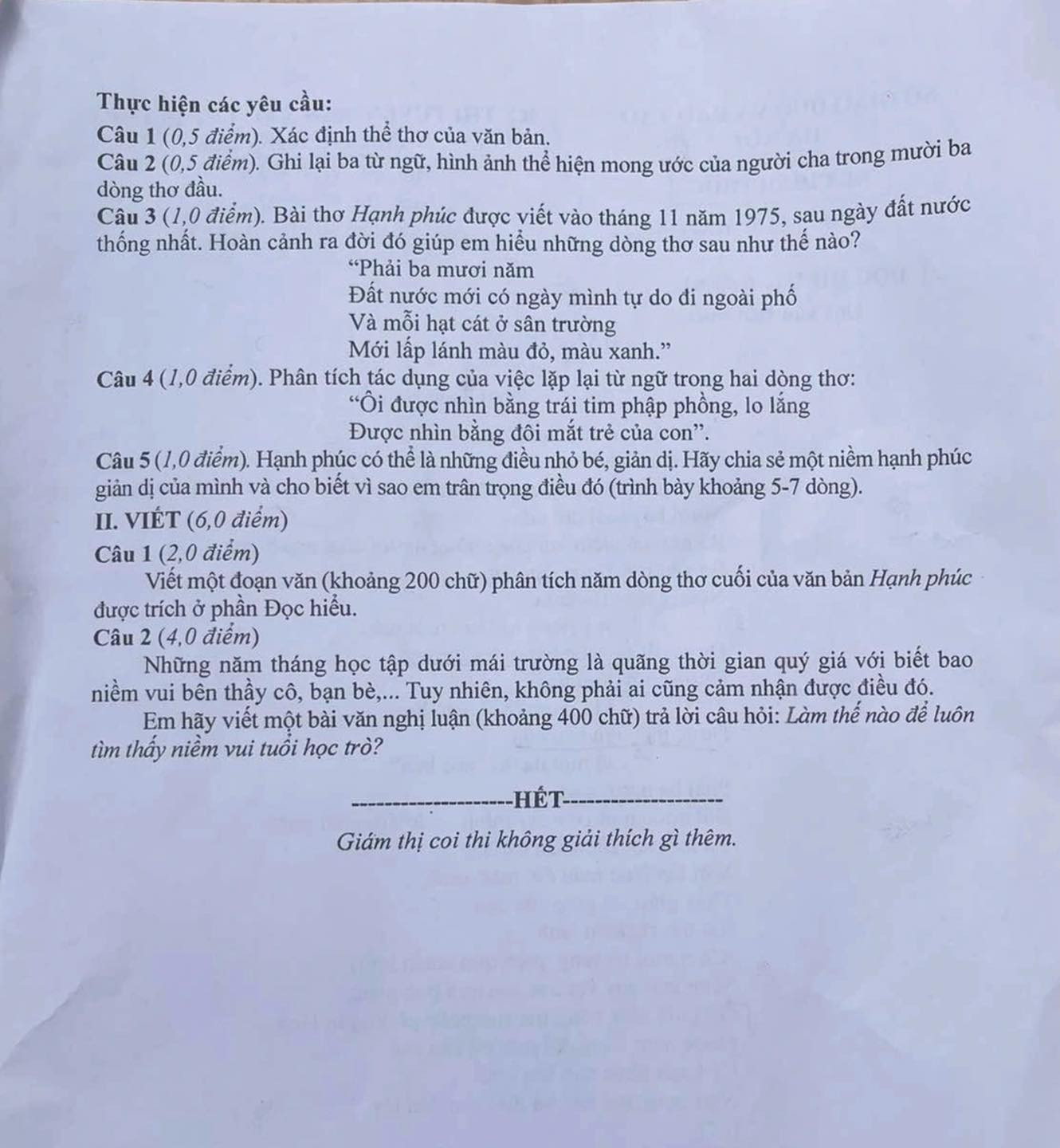 Sáng nay 7/6, thí sinh 2K10 tại Hà Nội bước vào kỳ thi tuyển sinh vào lớp 10 công lập với môn thi đầu tiên là môn Ngữ văn. Nhìn chung, đề thi Ngữ văn vào lớp 10 năm nay tại Hà Nội được thí sinh đánh giá là vừa sức, có điểm mới để phân loại học sinh nhưng không đánh đố.