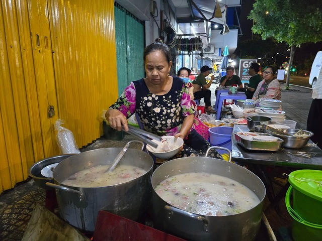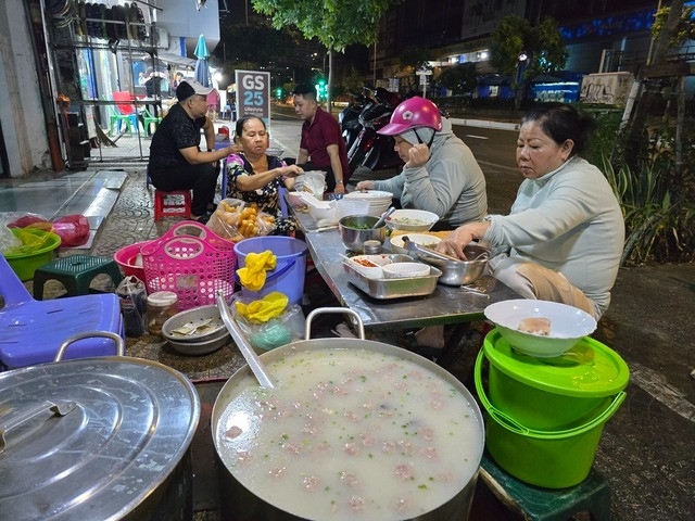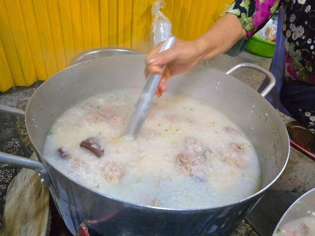 | Hàng cháo giò heo mở bán 3h sáng nhưng rất đông khách. |