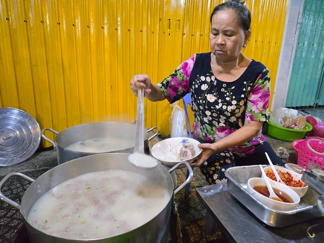 Mỗi ngày, hàng cháo của bà Nguyễn Thị Phượng (61 tuổi) trên đường Hoàng Diệu, quận 4, TPHCM chưa dọn xong hàng đã có rất nhiều người đứng chờ. Điều đặc biệt là hàng cháo này chỉ mở bán vỏn vẹn 150 phút, từ 3h - 5h30.
