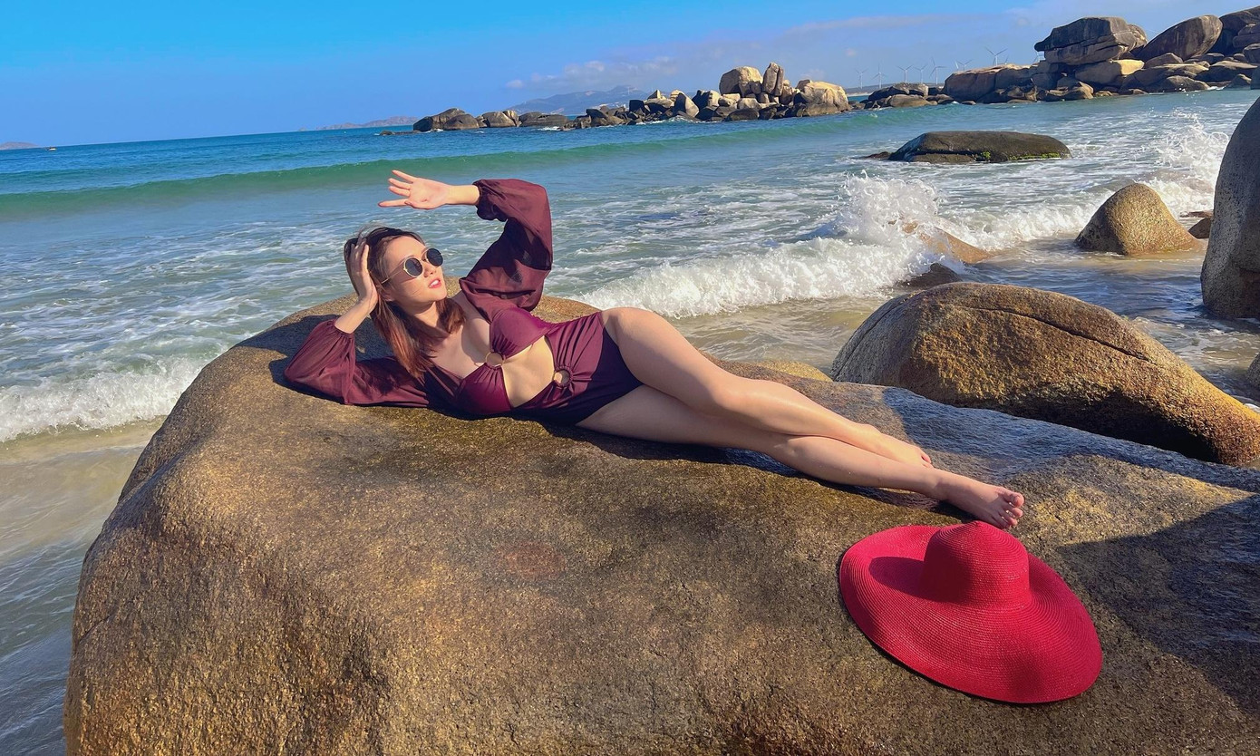 Hoặc khi đi biển, Hương Giang cực kỳ táo bạo với bikini cổ khoét sâu để lộ chân ngực thấp thoáng, khiến nhiều người tấm tắc khen Hương Giang 'nóng bỏng' chẳng kém gì nhiều nữ diễn viên khác ở "vũ trụ phim VTV".