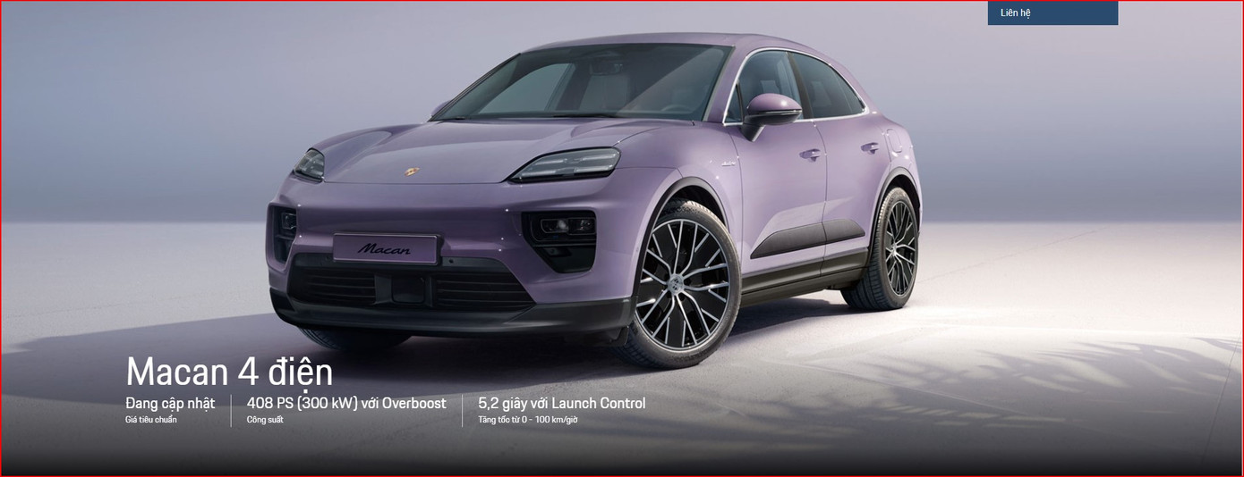 Mới đây, trang web của Porsche Việt Nam đã thêm mẫu Macan thuần điện (EV) vào dải sản phẩm của mình. Động thái cho thấy chiếc SUV điện này sắp được đưa về phân phối tại thị trường trong nước.