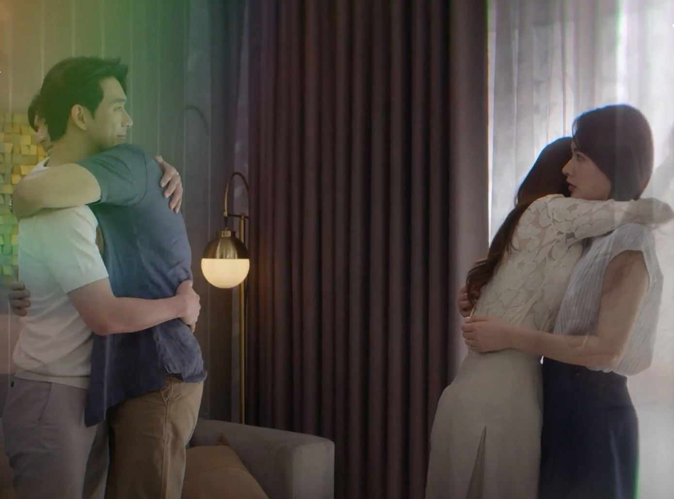 Các diễn viên cũng dành nhiều tình cảm quan tâm, yêu thương cho đồng nghiệp. Đáng chú ý, Quốc Anh gây bất ngờ khi chủ động “ôm hôn” thắm thiết Song Luân.