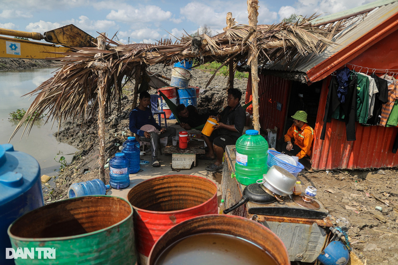 Tại các đoạn đang thiếu cát để thi công, nhiều máy móc dừng hoạt động nhiều ngày, công nhân một số hạng mục tạm nghỉ vì chưa thể tiếp tục công việc.