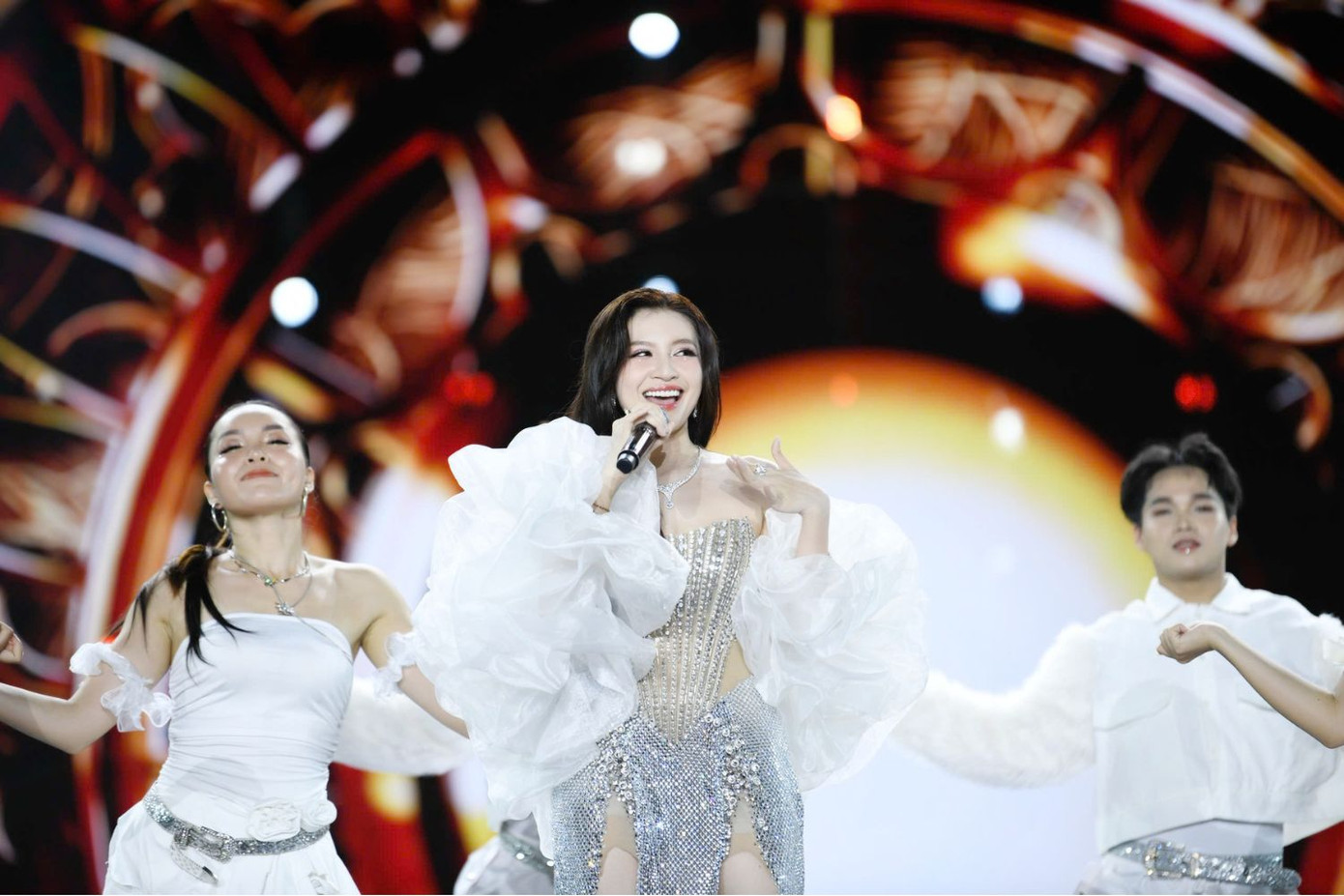 Giang Hồng Ngọc khiến không khí đêm Chung kết lắng đọng với sân khấu trình diễn Vụt Sáng Thành Vì Sao. Top 15 thí sinh tỏa sáng trong phần thi trang phục dạ hội qua những câu hát ngọt ngào: "Vụt sáng thành vì sao góp lấp lánh trên cao. Chiếu sáng thế giới này bằng bao thanh âm. Chỉ có tôi mới biết sân khấu này là cuộc sống. Giấc mơ duy nhất đời tôi hằng mong".