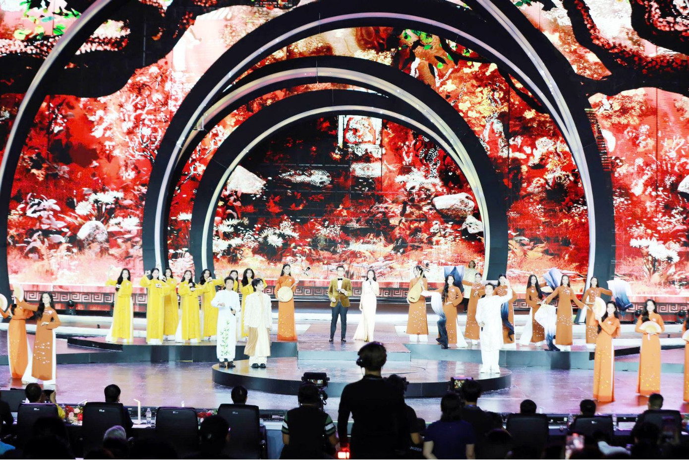 Mở màn đêm diễn, 25 thí sinh khoe nét đẹp dịu dàng của người phụ nữ Việt Nam trong phần thi áo dài với chủ đề Vườn Xuân Trung Nam Bắc 2025. Các thi sinh gửi đến khán giả những điệu múa quạt, múa chén uyển chuyển trên nền nhạc Việt Nam Hào Quang Rực Rỡ do NSND Trọng Phúc, Nguyễn Trần Trung Quân và người con xứ Huế Xuân Định K.Y trình diễn.