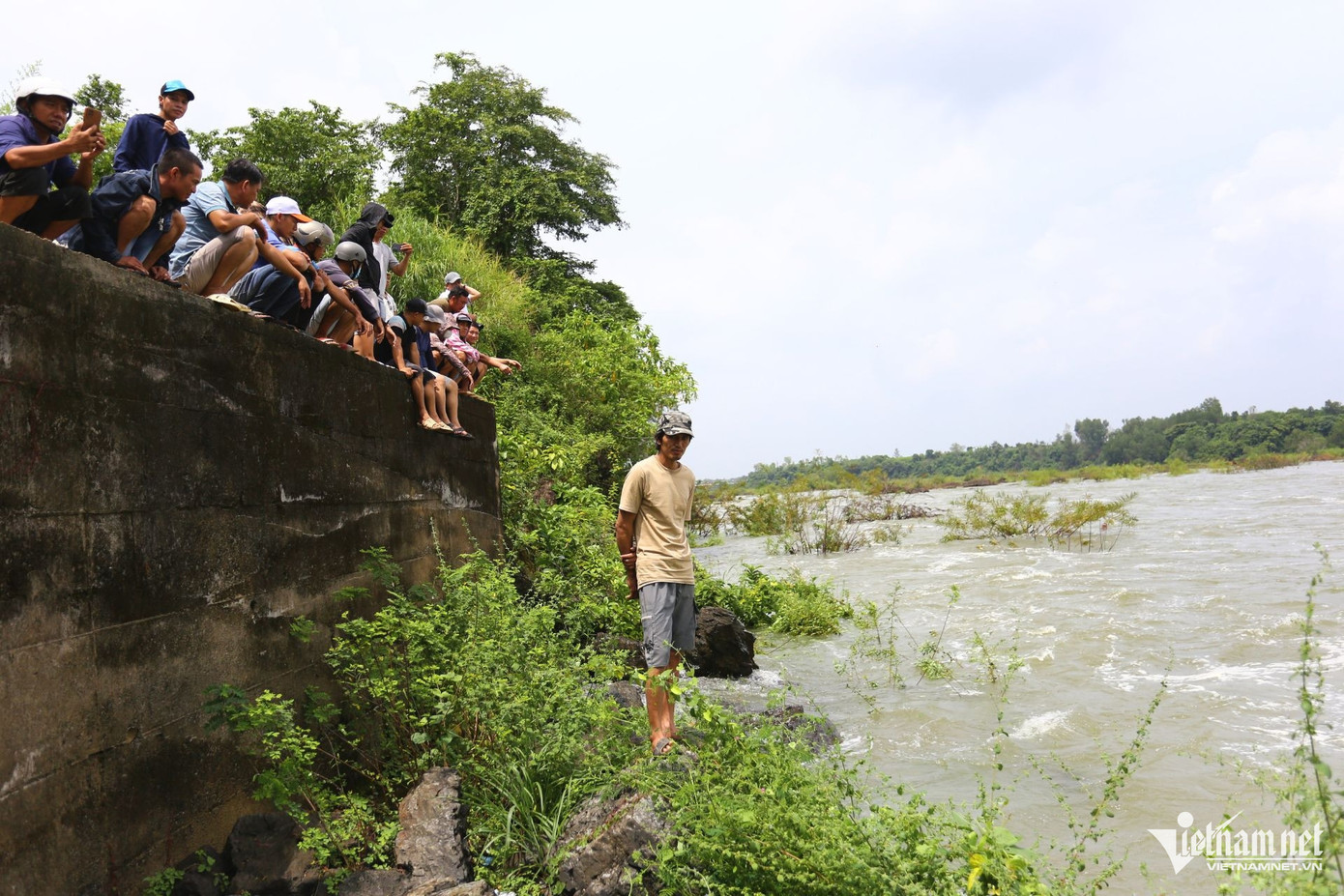 Hàng trăm người dân kéo nhau chui rào để xem hồ thuỷ điện lớn nhất miền Nam xả lũ. Nhiều người tranh thủ mang lưới, cần câu để 'săn' cá trôi bên bờ, bất chấp nguy hiểm.