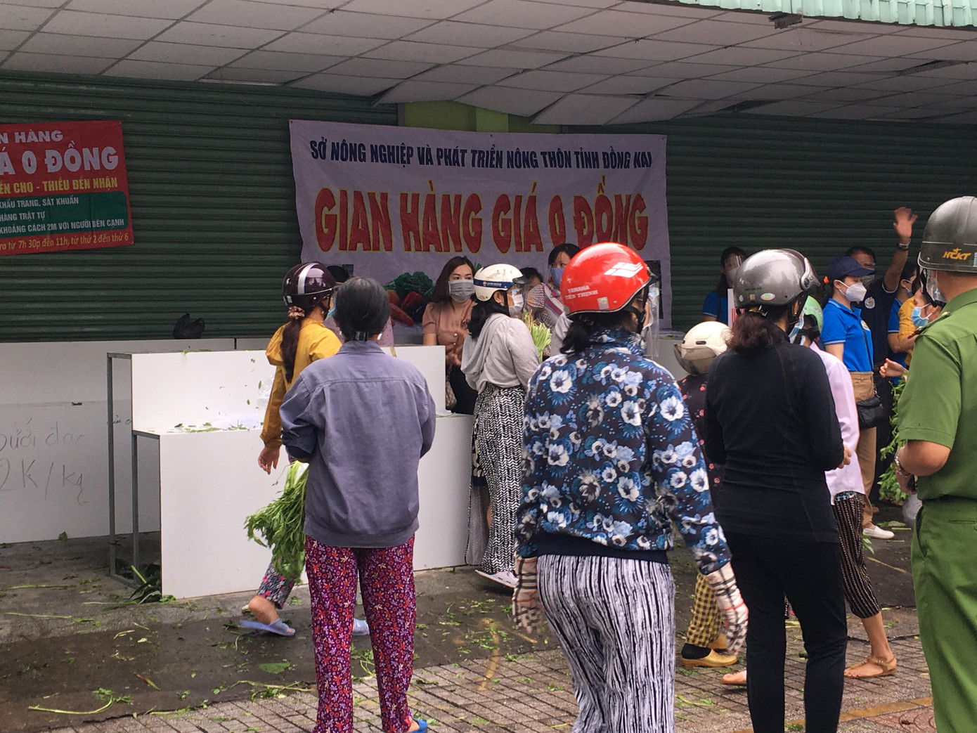 Cùng ngày, Sở Nông nghiệp và PTNT Đồng Nai cũng khởi động “Quầy hàng nông sản giá 0 đồng” phát miễn phí nguồn rau tươi cho bà con tại 6 phường thuộc TP Biên Hòa đang bị phong toả do dịch COVID-19.