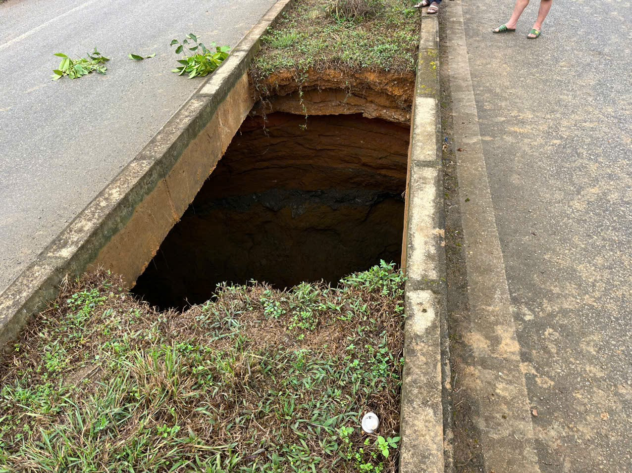 | Hố sụt lún ở giữa dải phân cách đường. |
