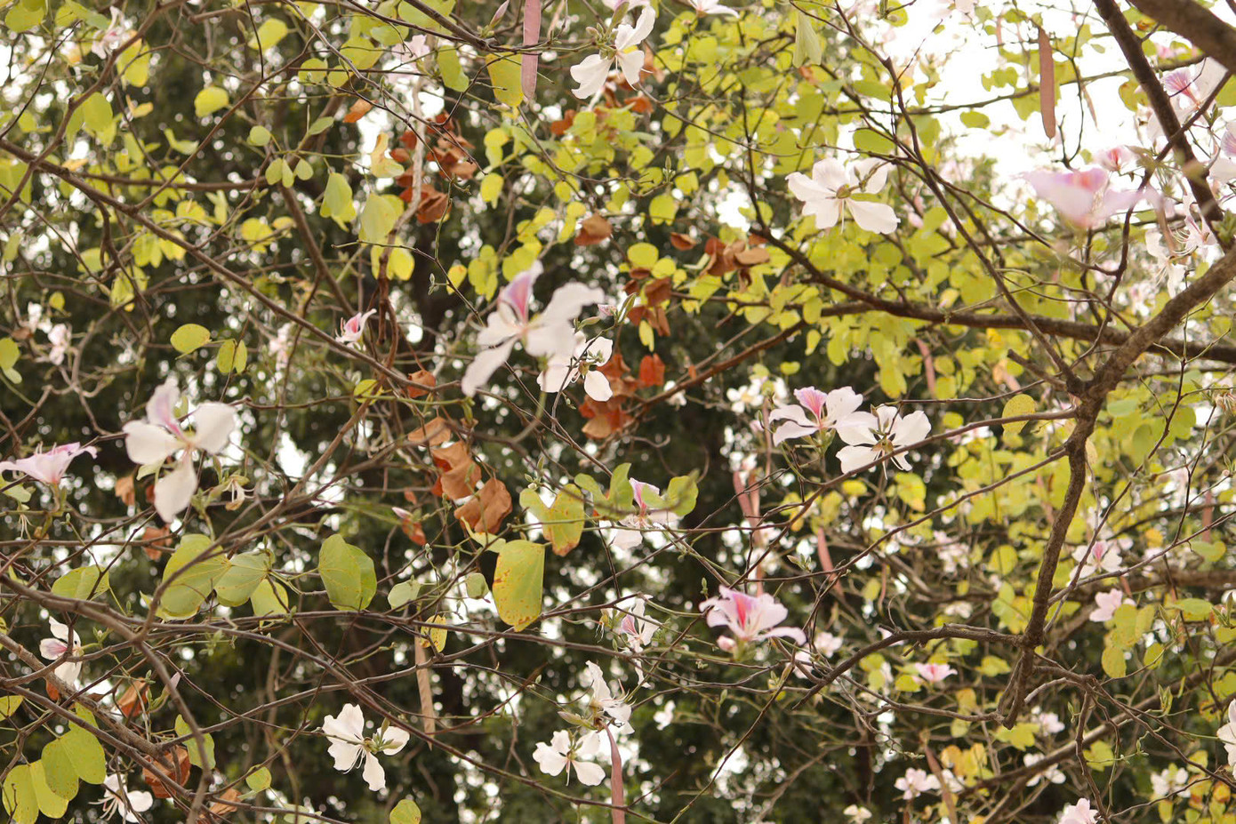 | Những tán hoa chớm nở trên cung đường hoa ban nổi tiếng Hà Nội. |